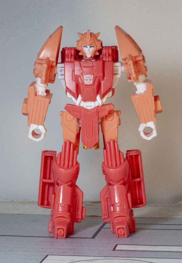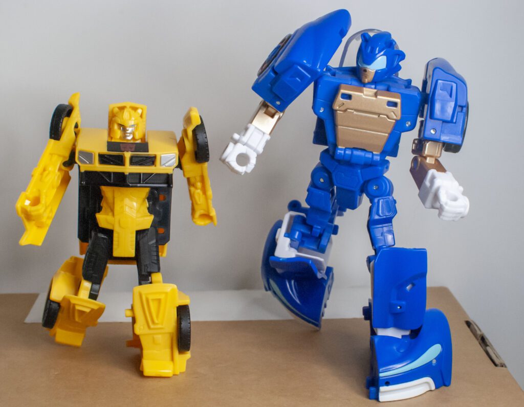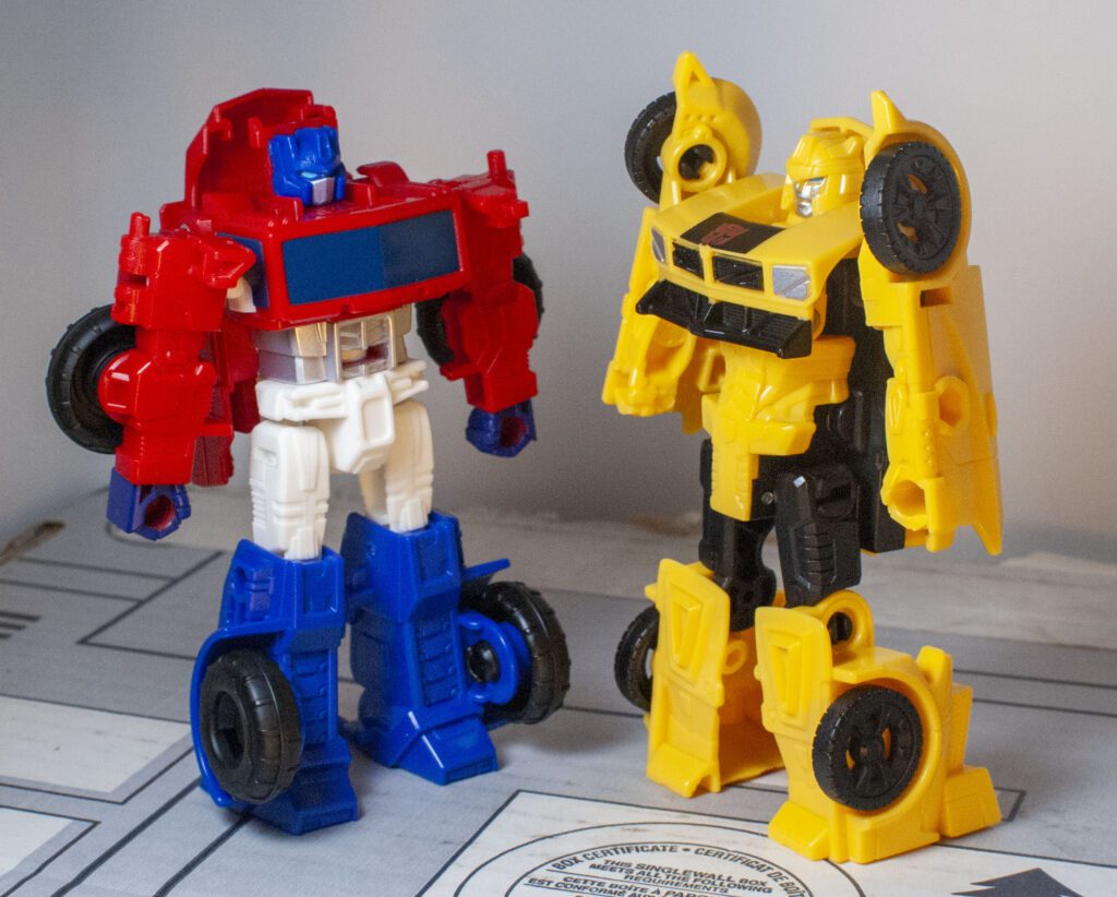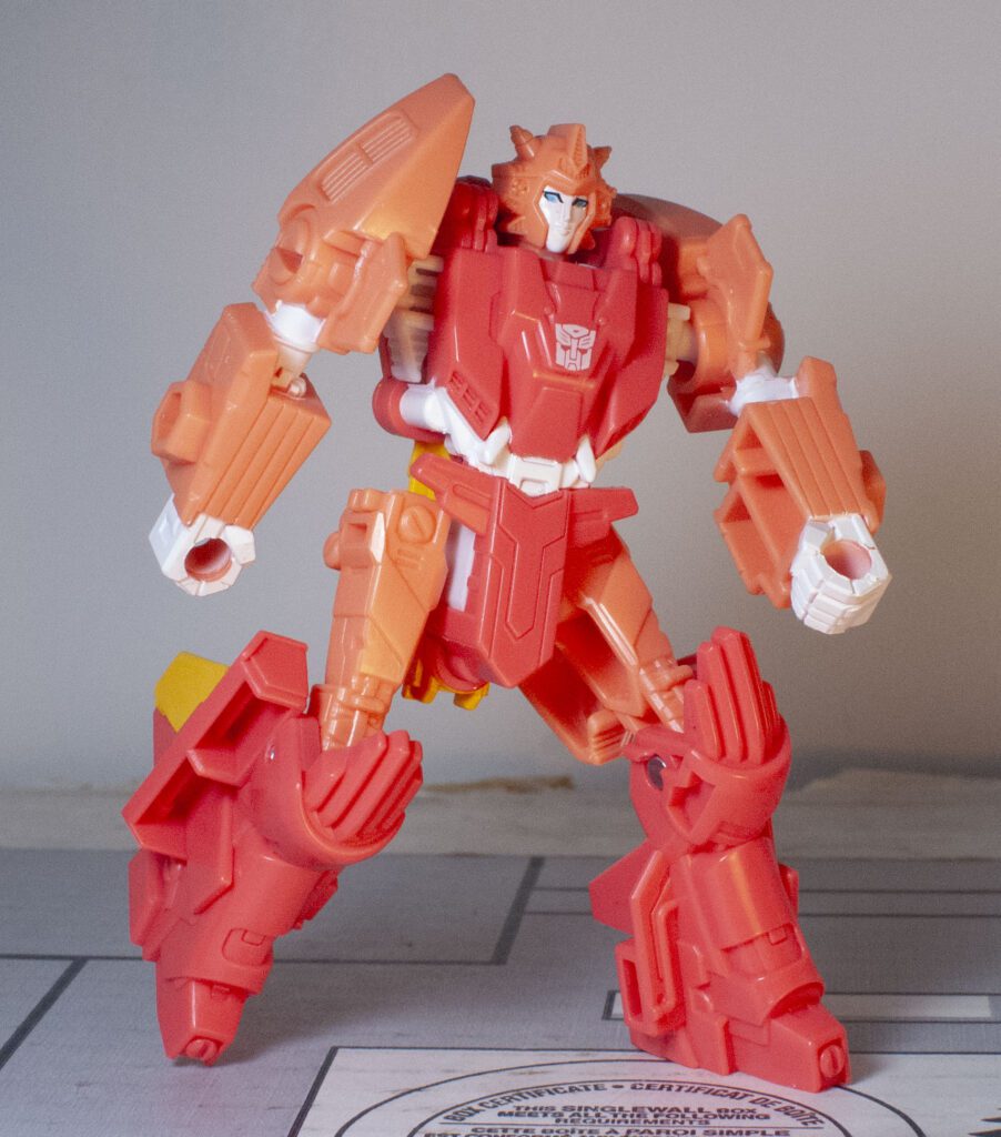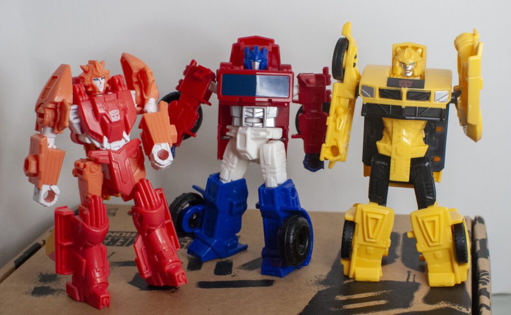 So, Bee and Galvatron are part of a different size class from the normal Cyber Changers, called “Armored Cyber Changers.” Basically, they’re Cyber Changers with a big weapon accessory (so why’s it “Armored?” They’re “Armed,” that’s a different thing!). Either way, that accessory adds 5 entire Canadian dollars to the price. I didn’t really regard the price bump as worth it, which is why it took me until now to get in on Bee and Galvy. Honestly, with Bee, I mostly wanted to complete the show’s lead trio.