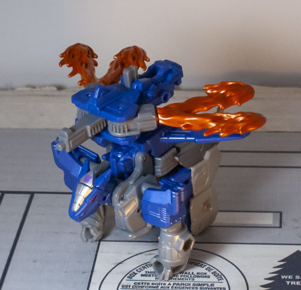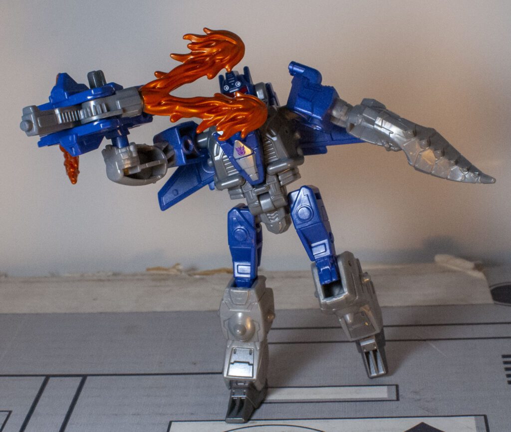Galvatron’s altmode is a four-legged, horned dragon, with jet wings, a cool concept that’s a bit hampered by the same issues as Megatron and Snarl, where his forelegs still resemble humanoid arms with fists, and his rear legs still resemble longer legs bent at the knees.