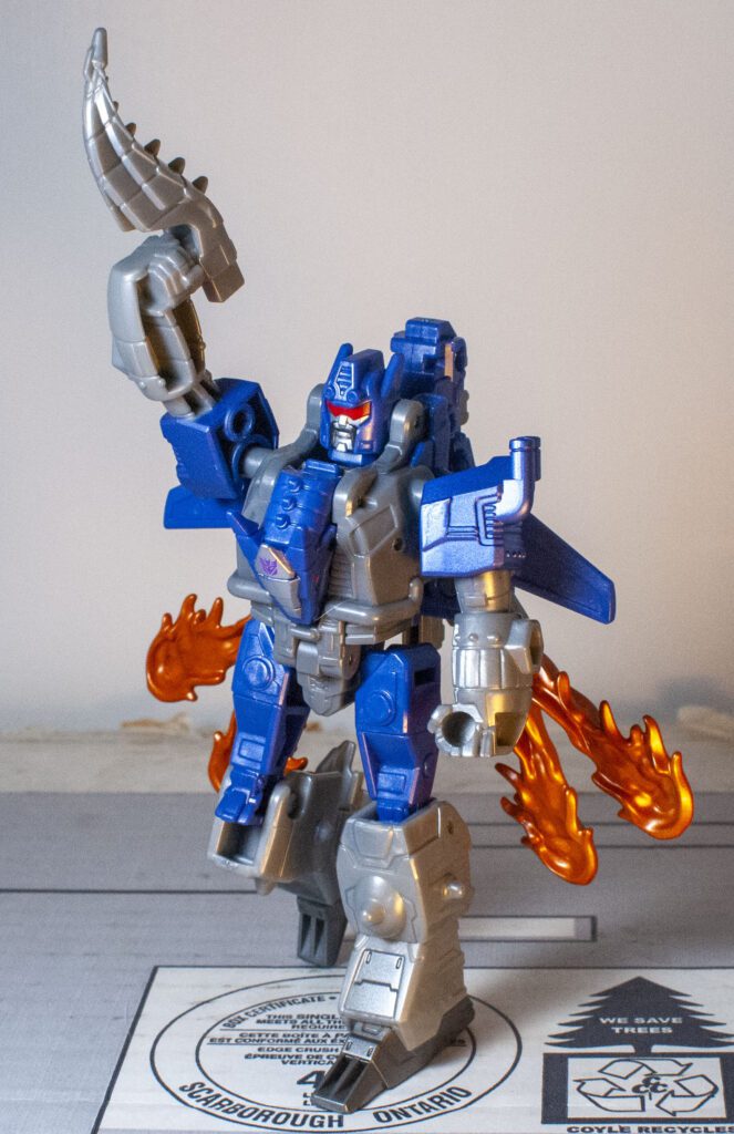 For colors, we’re in old-fashioned Bayverse Prime territory of blue, with red flames. Odd to think people don’t like these flames, I think they look slick.