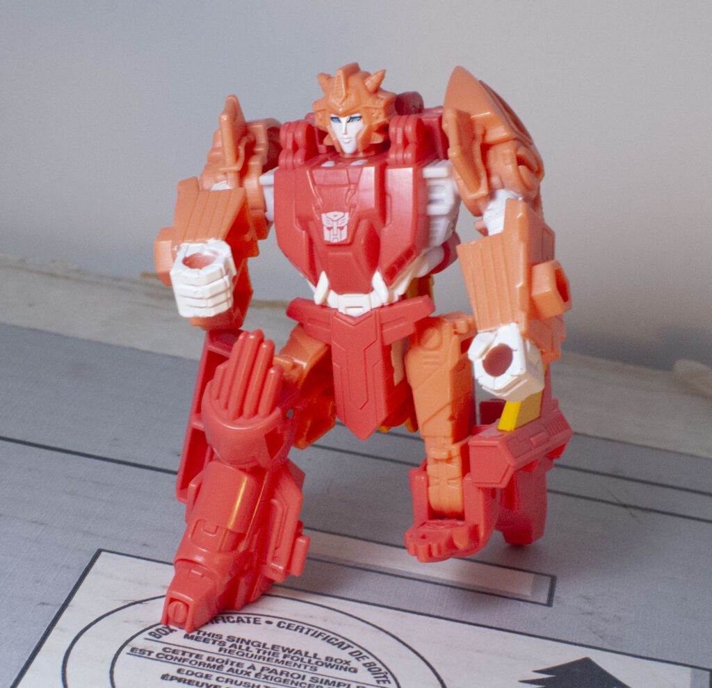 This stands in sharp contrast to how he’s depicted on the show, where he’s scaled to be shorter than his compatriots. The figure’s about as tall as the Earthrise Bee/Cliffjumper/Hubcap tooling!