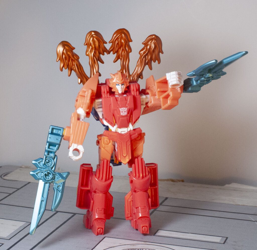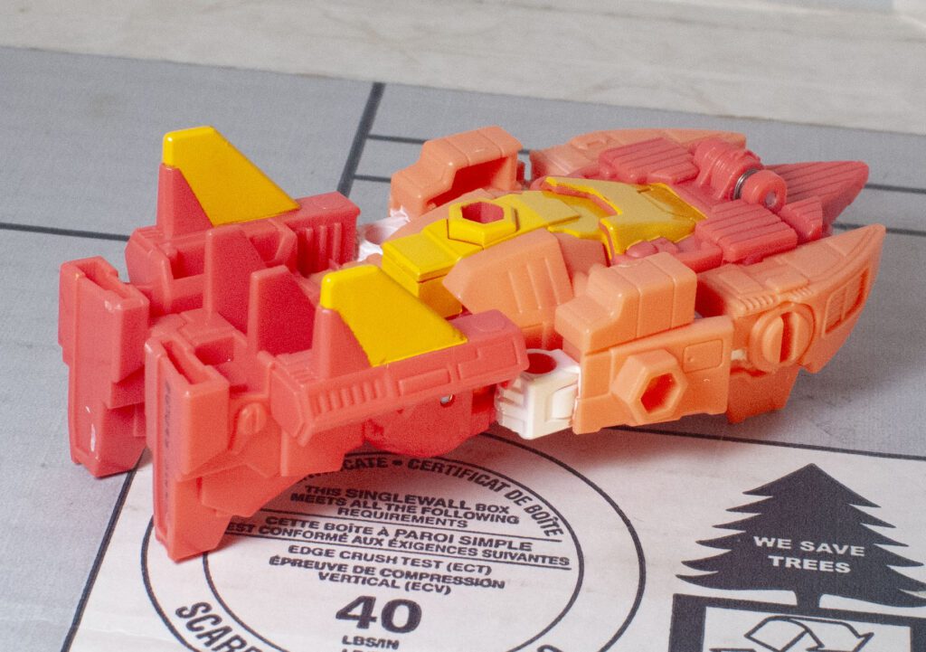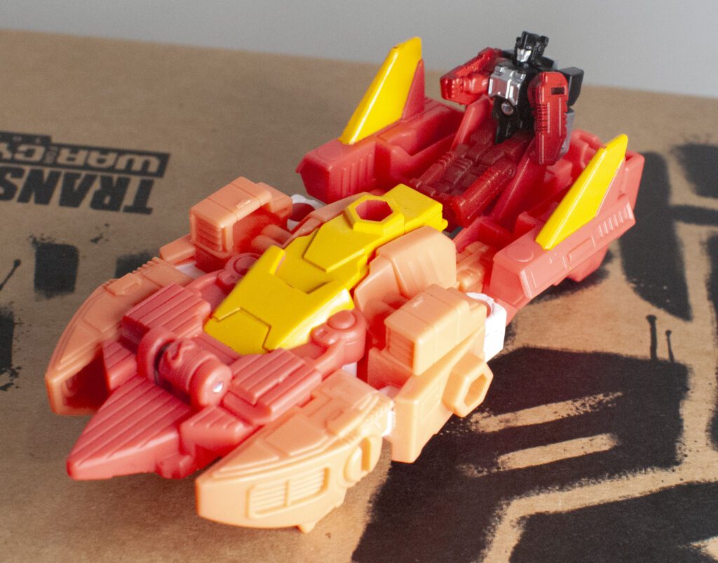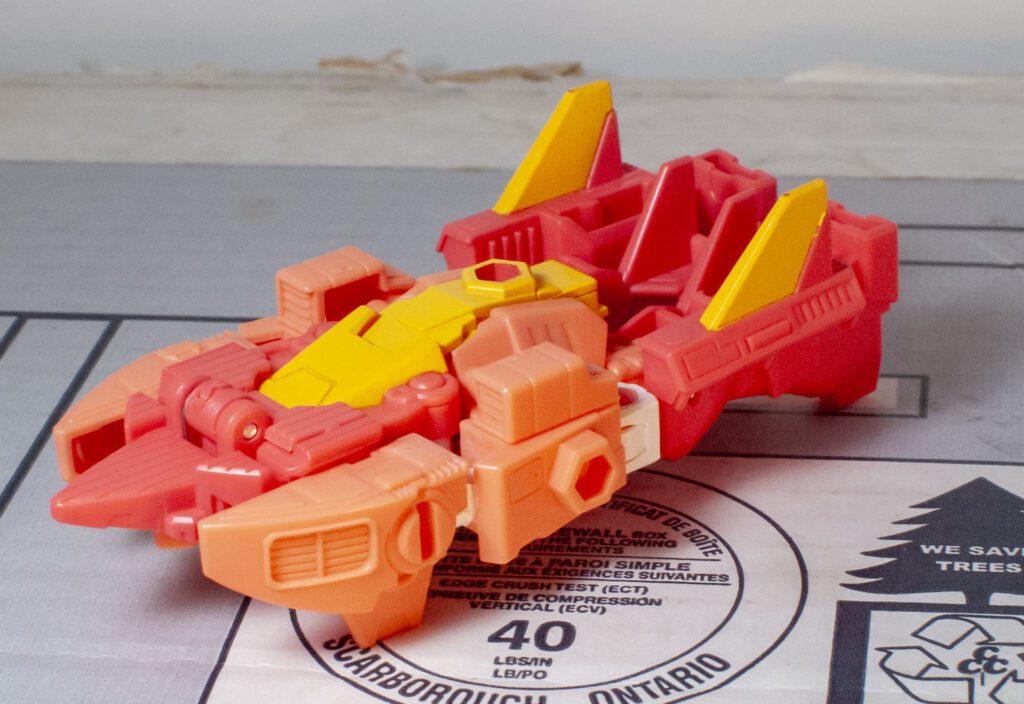 The geared gimmick makes a little more sense here, as you can have the flames forwards for an attack mode, or rotate them back in a way that makes them resemble a second layer of insectoid wings, to my eyes.
