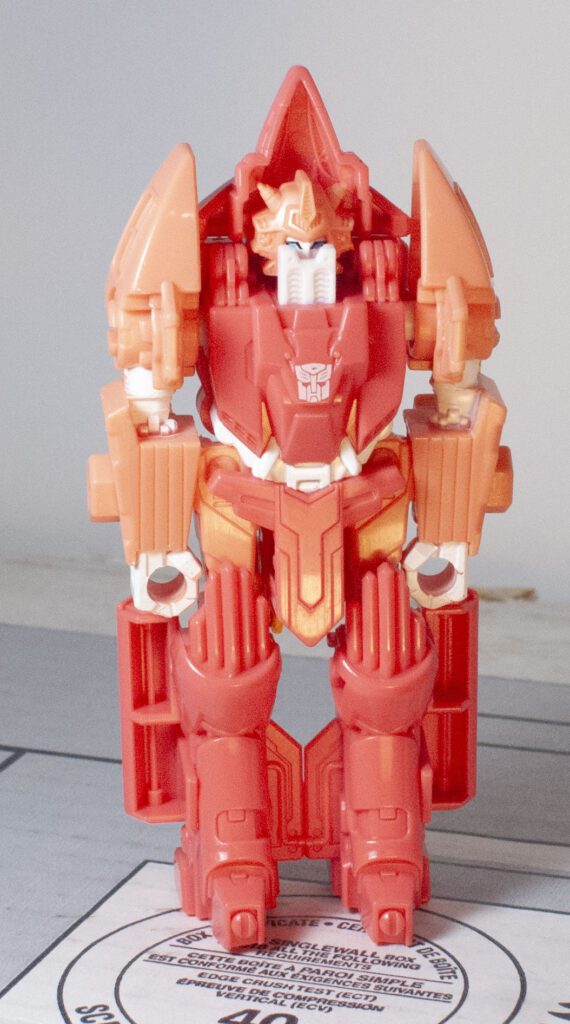 And it works! Okay, mostly. One of the last steps always gives me trouble, plugging in the piece that forms the roof, and a bit of the back and sides of the truck. They never want to sit flush, and those side panels love to not plug in, and fold inwards, when I can’t easily retrieve them without detransforming the thing a bit.