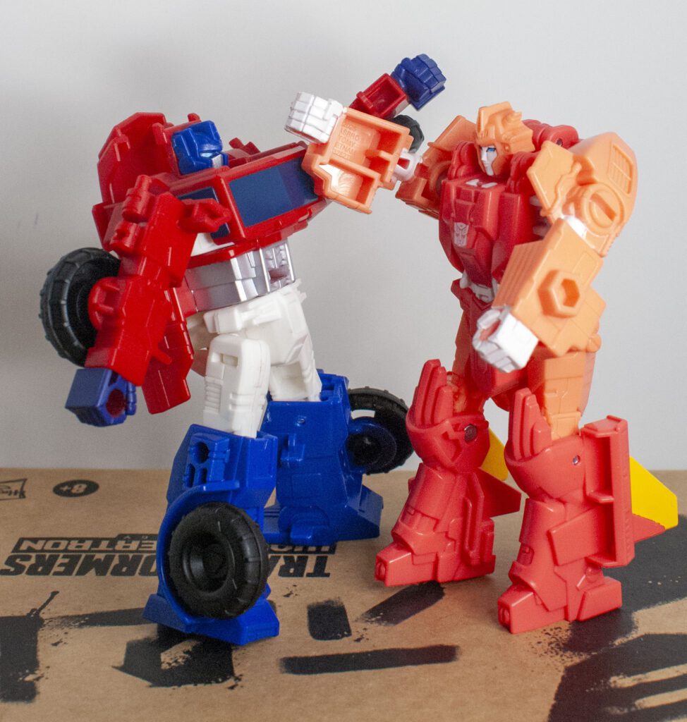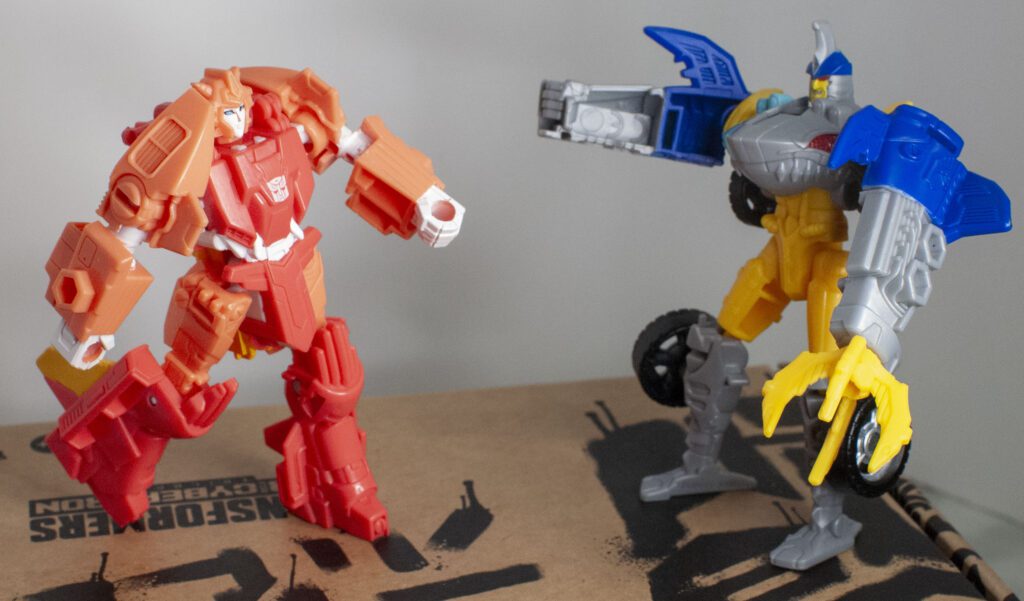 Man, Cyberworld’s been a fun show. And a fun toyline! The show could have been slop, the figures could have been chintzy, Authentics-eque tat, but Hasbro decided to put their whole back into making both of them work, and it’s been the most fun I’ve had with a new Transformers thing in a long time. As usual, here’s a link to the full show, if you haven’t watched it yet, the episodes are only five minutes long, and here’s my look at most of the toyline’s first wave, along with the gigantic, affordable, gimmick-laden Grimlock figure over here. Put simply, this is a budget toyline, where most of the figures are about 4 inches tall, and include a simple autotransformation gimmick, yet actually have effort put into them, unlike so many budget and gimmick toys.