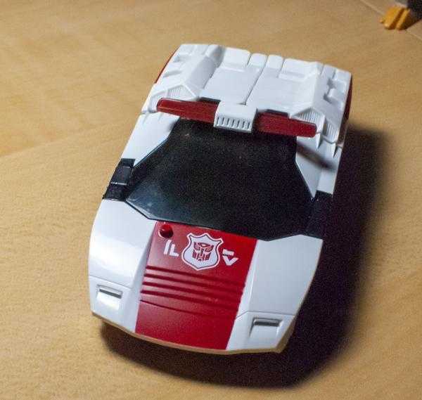 Red Alert’s still nice and easy to shift into his car mode, simple enough that I was able to go off of memory, without consulting the instructions. One thing to beware of on my copy: The joint his feet fold away on is really stiff, and kind of difficult to use. Luckily, the plastic it’s attached to is flexible, so I don’t think it’s in danger of breakage.