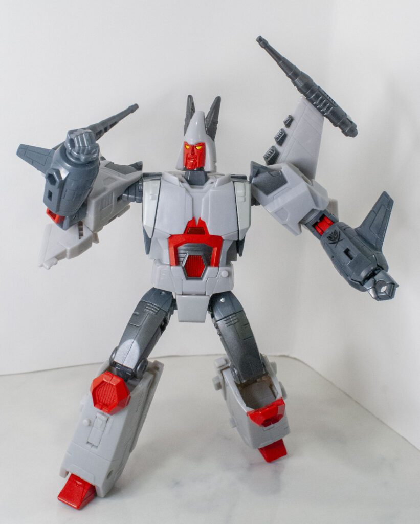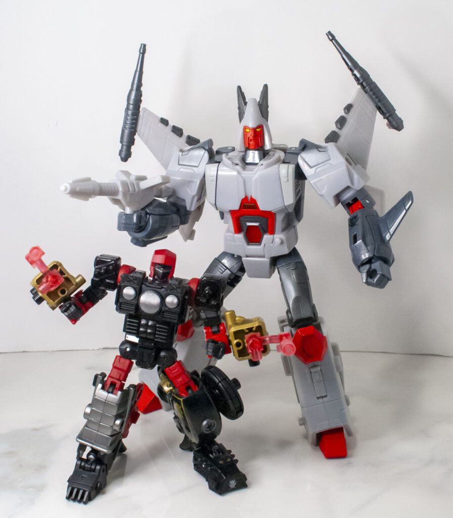 This was a highlight of Cyclonus, and all the essential goodness of that transformation is preserved here. Well, mostly. See, Ferak’s got a retooled jet-mode nosecone, so the really impressive trick where the whole front of the jet unfolds from his torso like origami actually has one less step to it.