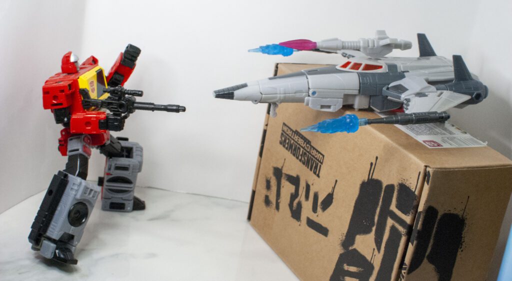 He thinks this rematch is going to go well, because he can point out how Blaster’s tape deck buttons have yellowed.