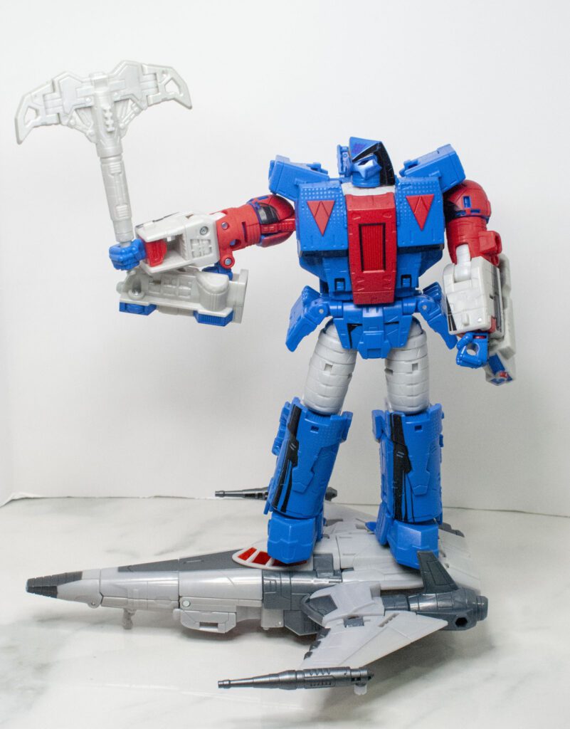 I was a big fan of Kingdom Cyclonus, which is what led me to this repaint. And all the good elements of the original are here. He’s big, very cleanly-designed in both modes, has a fun, inventive transformation, a ton of articulation, and just a lot of presence. It felt like someone on the design team was specifically a fan of Cyclonus, and put extra effort into him. And all of those good points are present here, in a package that (probably) isn’t going to yellow.