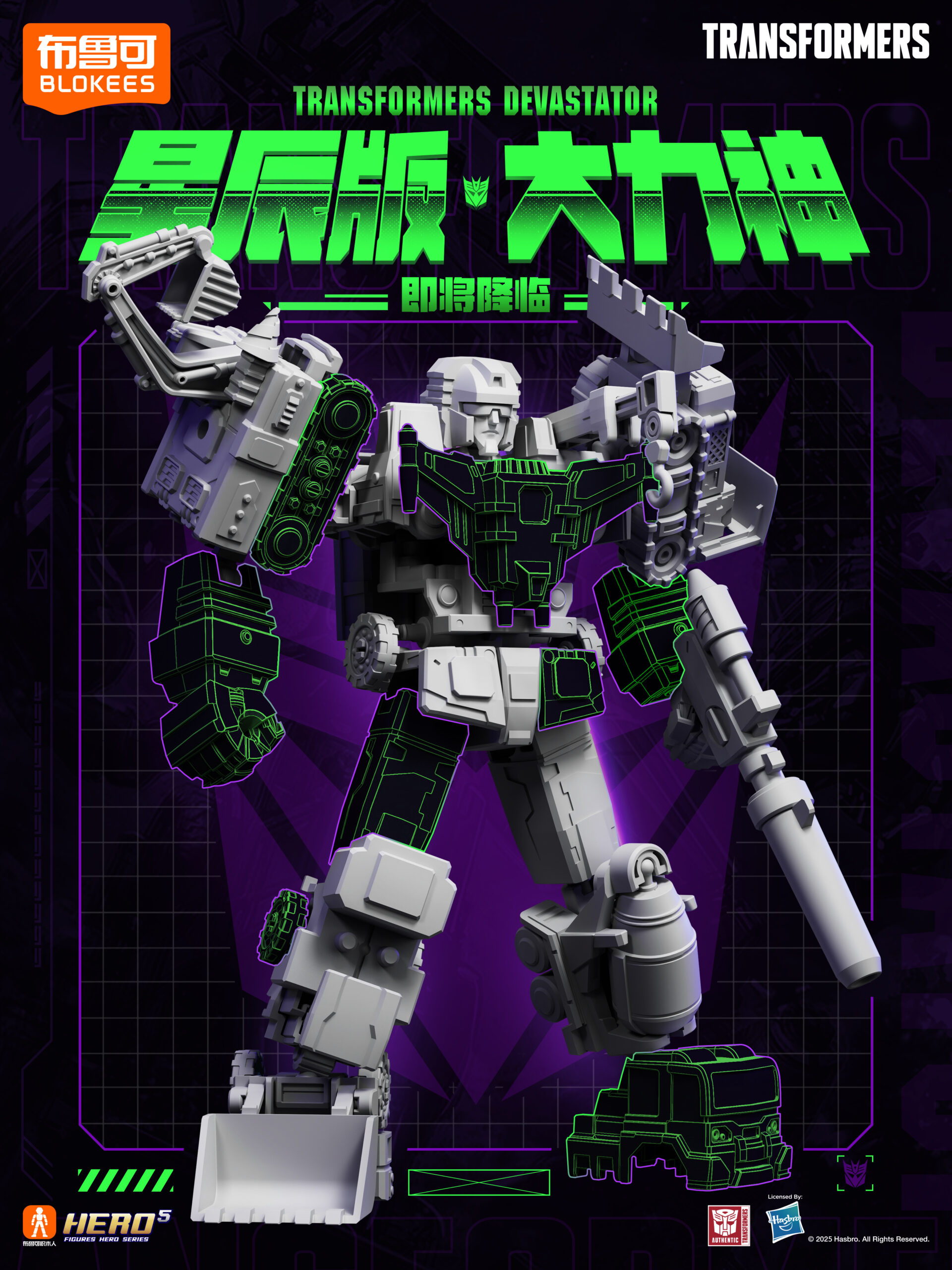 Once again via the official Blokees Weibo account, we have a new product update. This time we have a new promotional image of their Blokees Galaxy Defender Devastator. This combiner is built with the Constructicons and parts included in the Galaxy Defender collection. These are small 5.5 cm tall “chibi” style figures with 14 articulation points, packaged in blind boxes. See the promotional image after the jump and then sound off on the 2005 Boards!