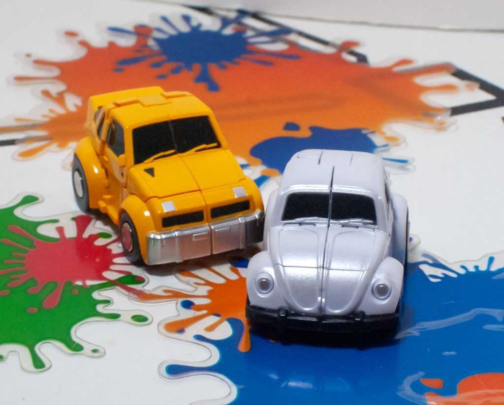 Meanwhile, I don’t have a vintage Bumblebee to directly compare Candyman to, but squinting at Transformers Wiki photos shows a similar extremely specific dedication to detail in recreating its squashed VW Bug form (so they’re shamelessly swiping a car, on top of a transformer).
