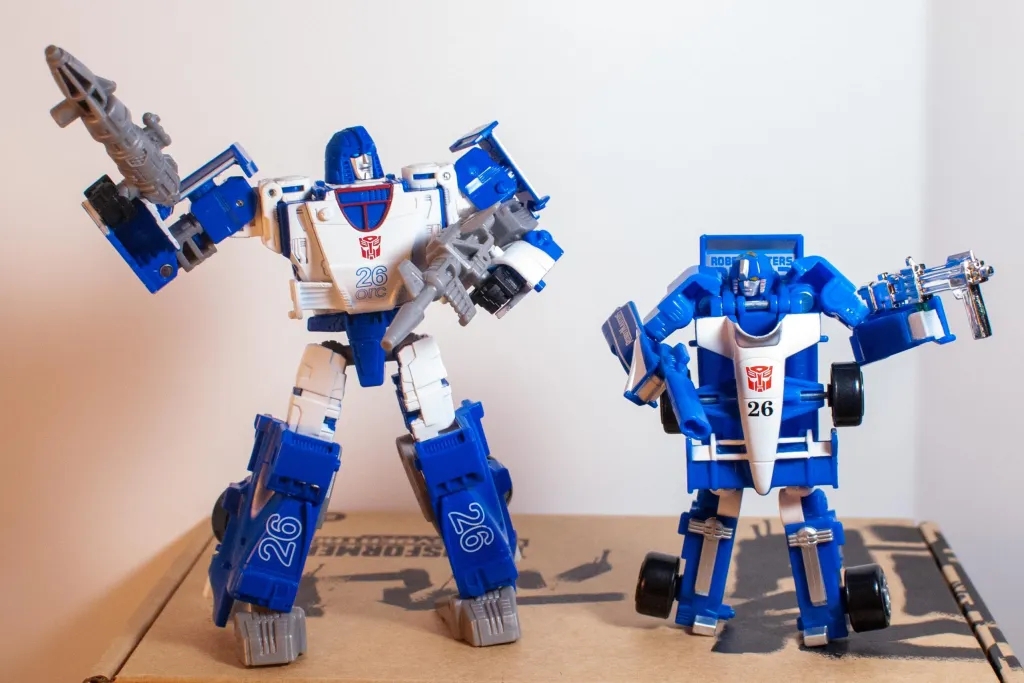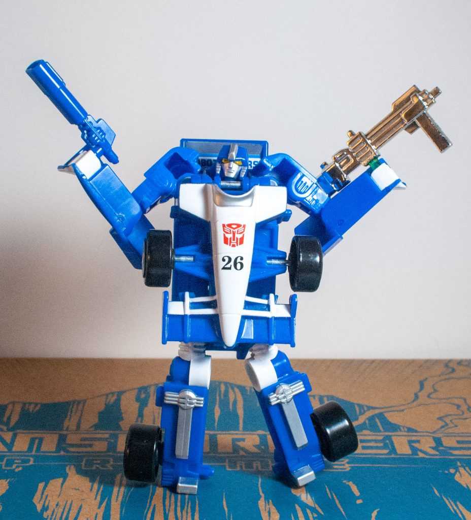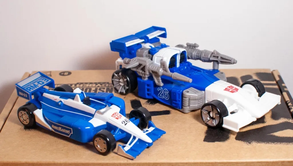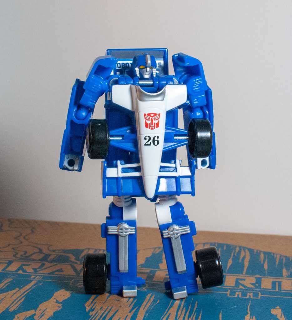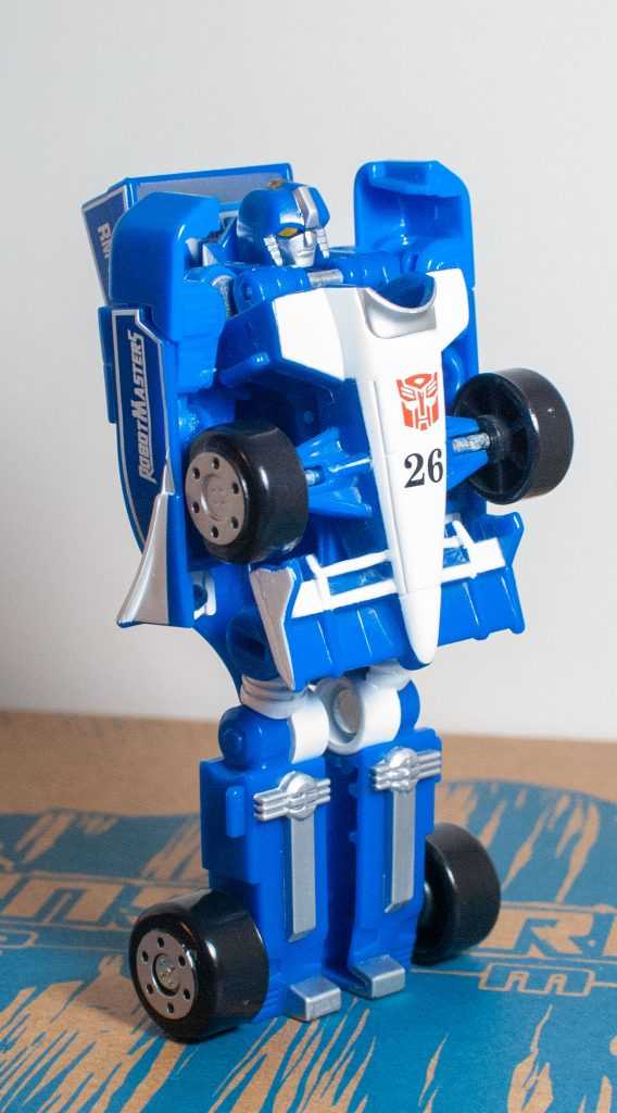 Anyway, the tooling got repainted a few more times over the years, and if you’re a Robots in Disguise (2001) fan, you probably know him as Skid-Z (Indy Heat in Japan), probably the most famous figure to wear the sculpt.