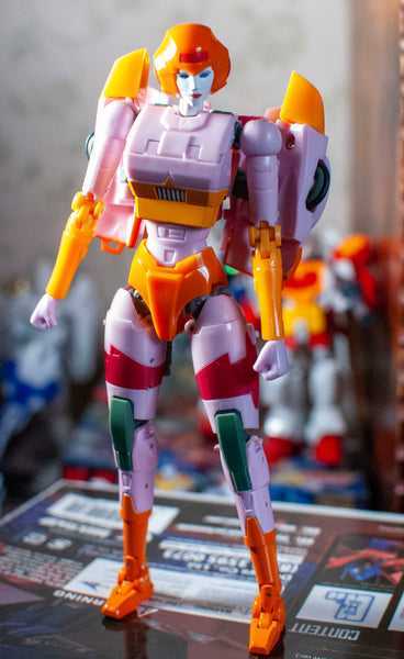 Masterpiece Arcee who? Ocular Max’s take on a Masterpiece Arcee runs circles around anything official, even the upcoming actual MP, by presenting us with a normal, non-weird, animation-accurate sculpt, a backpack-free transformation, great articulation, and a lot of fun option parts. And this Protoform version, released online after the convention was cancelled, takes the colors of her G1 toy prototype, and uses them to create a figure with an incredibly lush, sunset-y, vaporwave-y color scheme that makes that sculpt sing.
