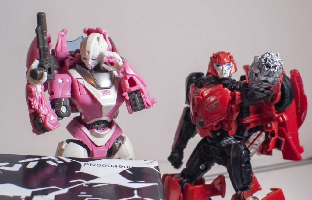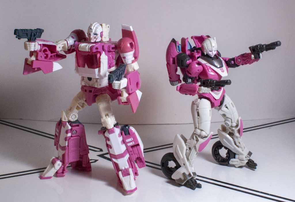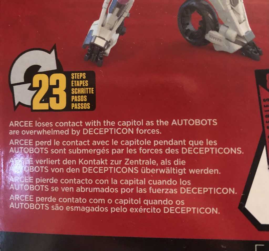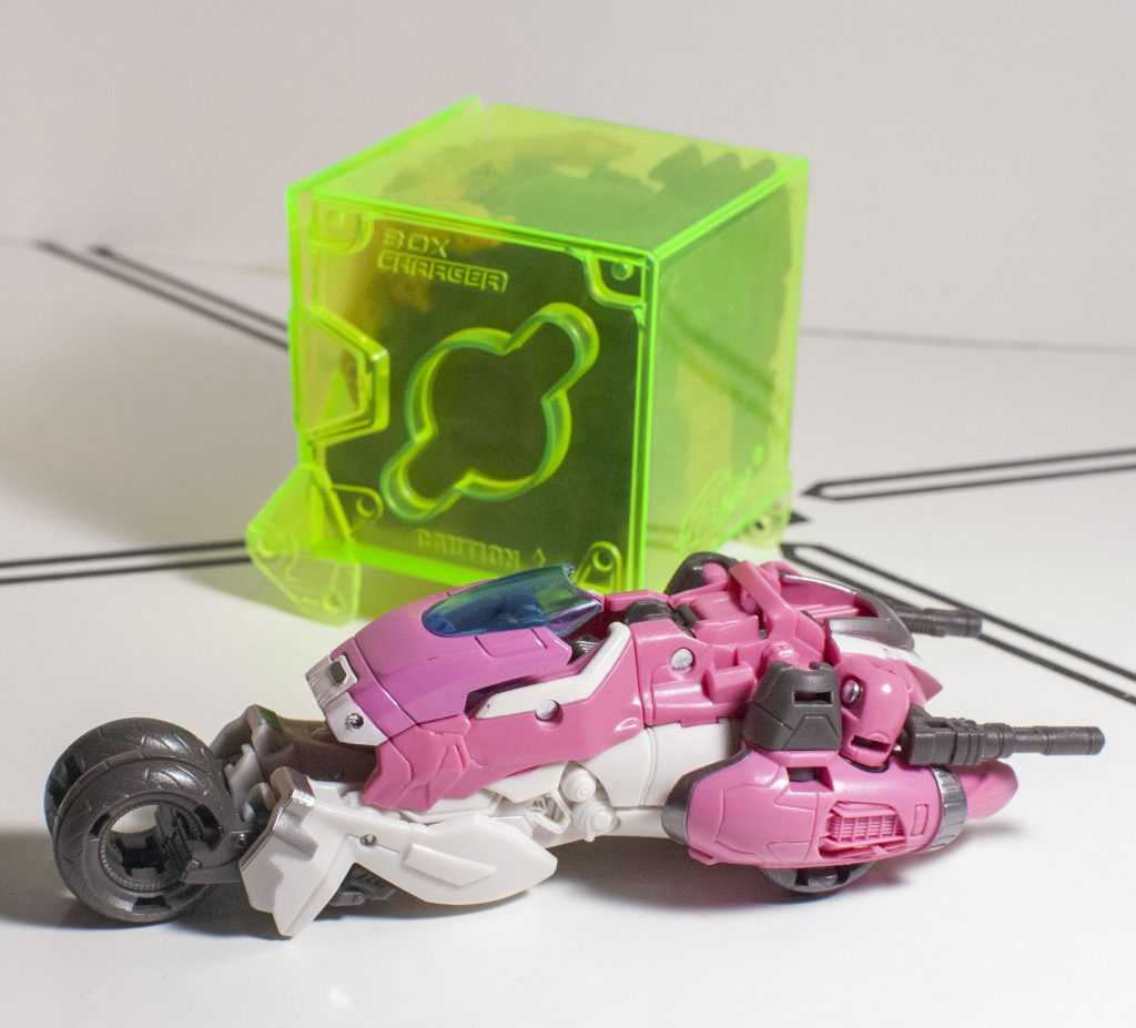Yes, it’s Bumblebee Movie Arcee, who had one line (which, amusingly, the box paraphrases), fired a couple laser blasts, stood in the background, and quietly looked really cool.