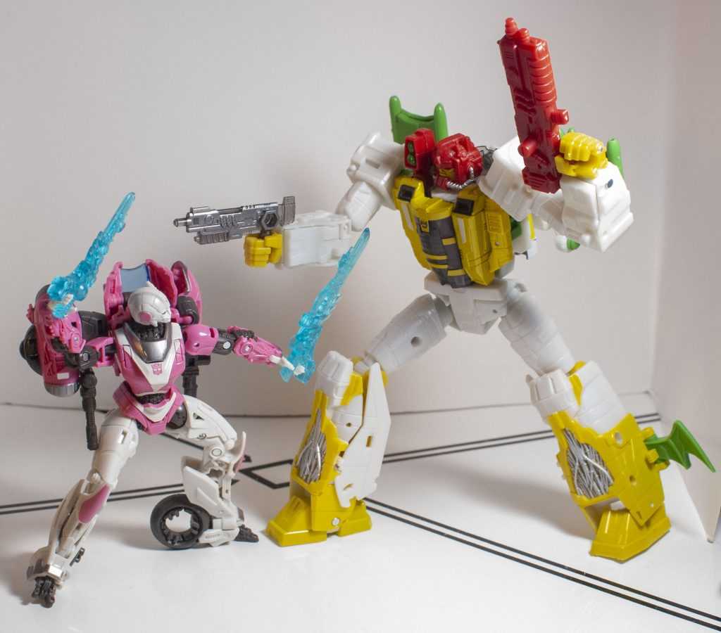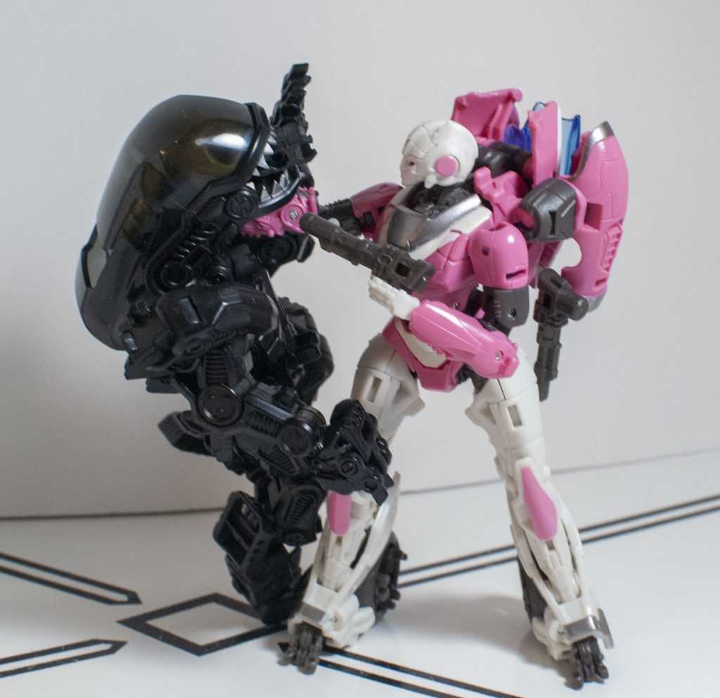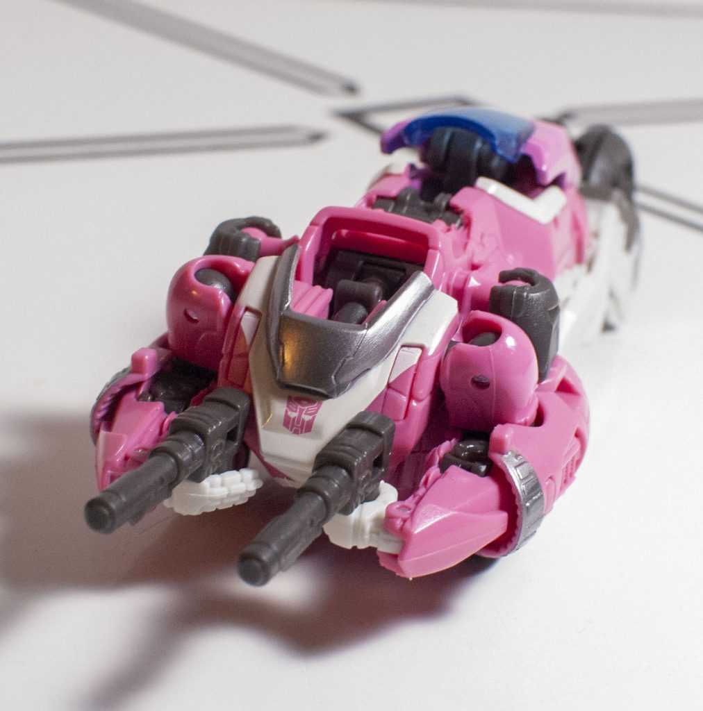 Yes, it’s Bumblebee Movie Arcee, who had one line (which, amusingly, the box paraphrases), fired a couple laser blasts, stood in the background, and quietly looked really cool.