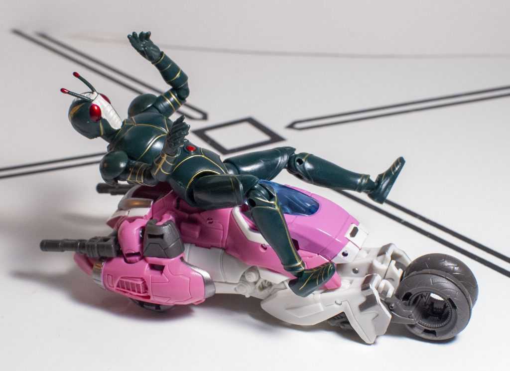 But in this Arcee’s case, the Vintage Cyberpunk Manga riff continues, because it’s a thick, two-wheeled motorcycle, like the Unrustables ones, or the Akira bike.