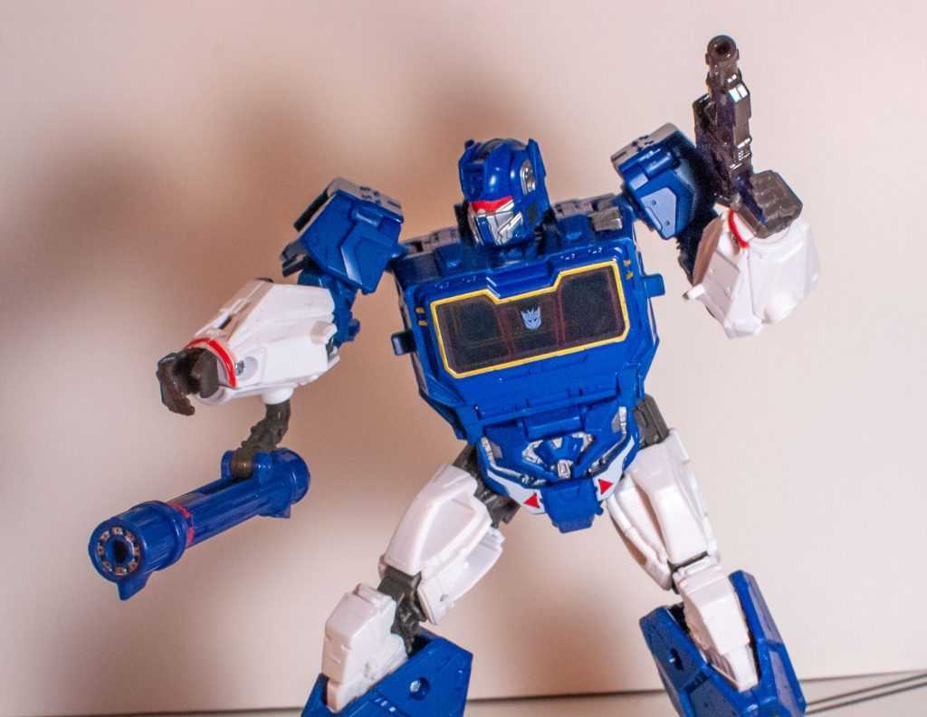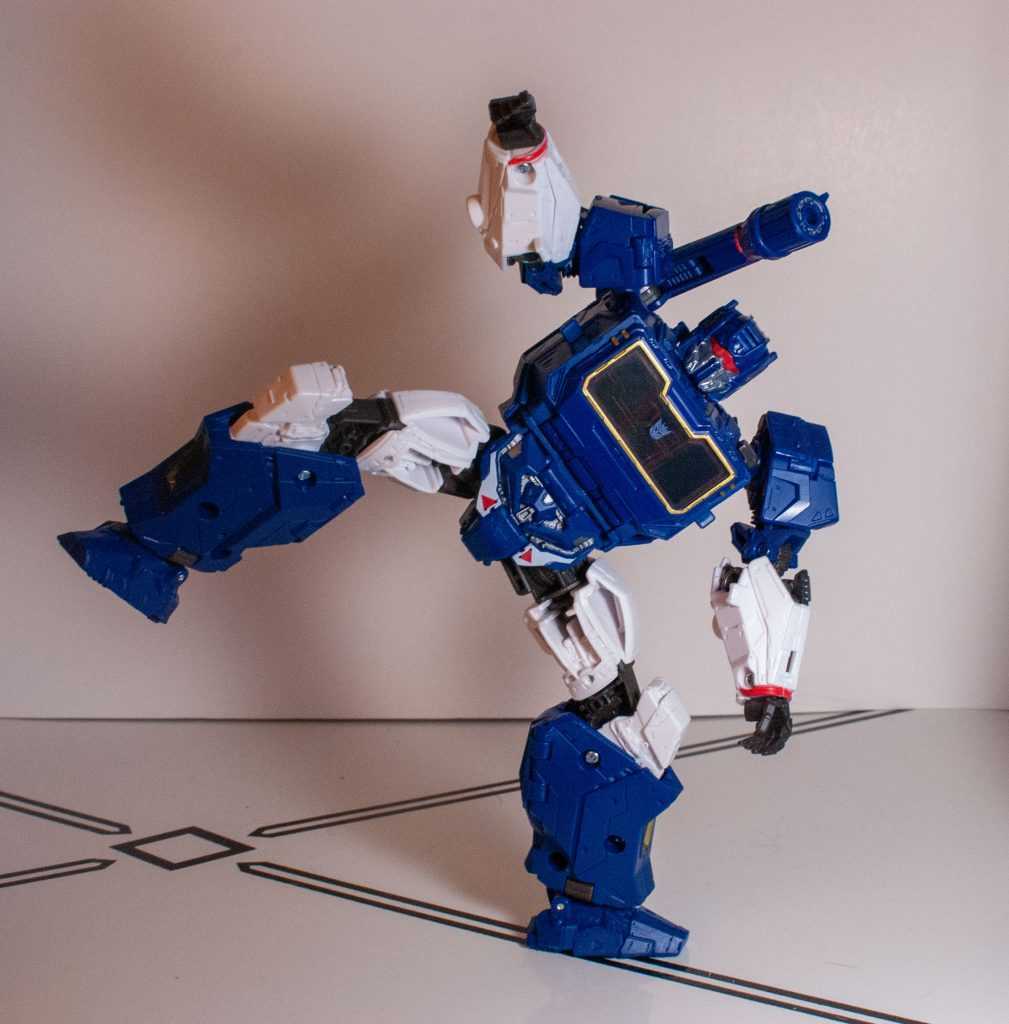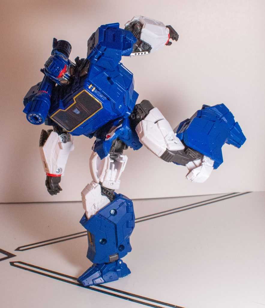 For a slabular bot, Soundwave can really move. He’s got multi-directional ankles, and double-knees with a really far range to them, even if the white bit in the middle of them likes to come out at odd angles.
