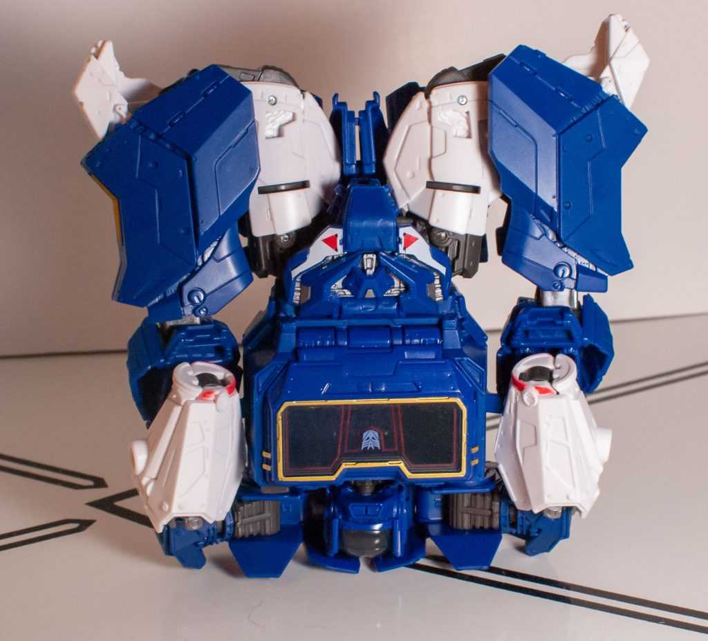 Aside from looking beefy, he feels beefy in-hand, again, by modern Voyager standards, and manages to avoid obvious hollowness (chest aside), except for the insides of his thighs, which compensate by doing a seldom-seen clever trick of sculpting those hollow bits with tech detailing.