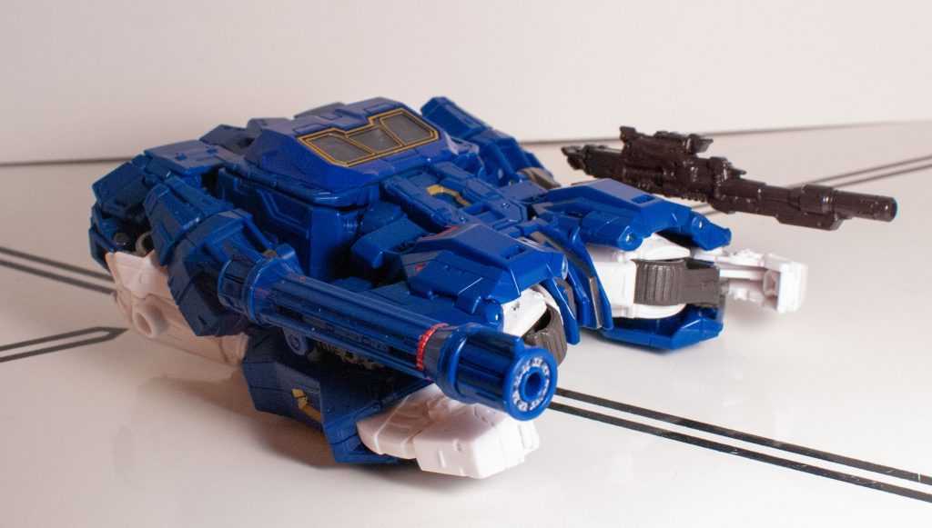I may be a bit biased, since, before the figure was even out, I saw a digibash of this guy into Perceptor, which placed the Gatling gun accessory in the center of this mode, making it easily read as “space tank,” but it’s something the actual figure can’t do. Regardless, I’ve heard it called a “crab” thanks to the mandible-like appendages on the front sides, but crabs have full claws, and limbs, and stuff like that.