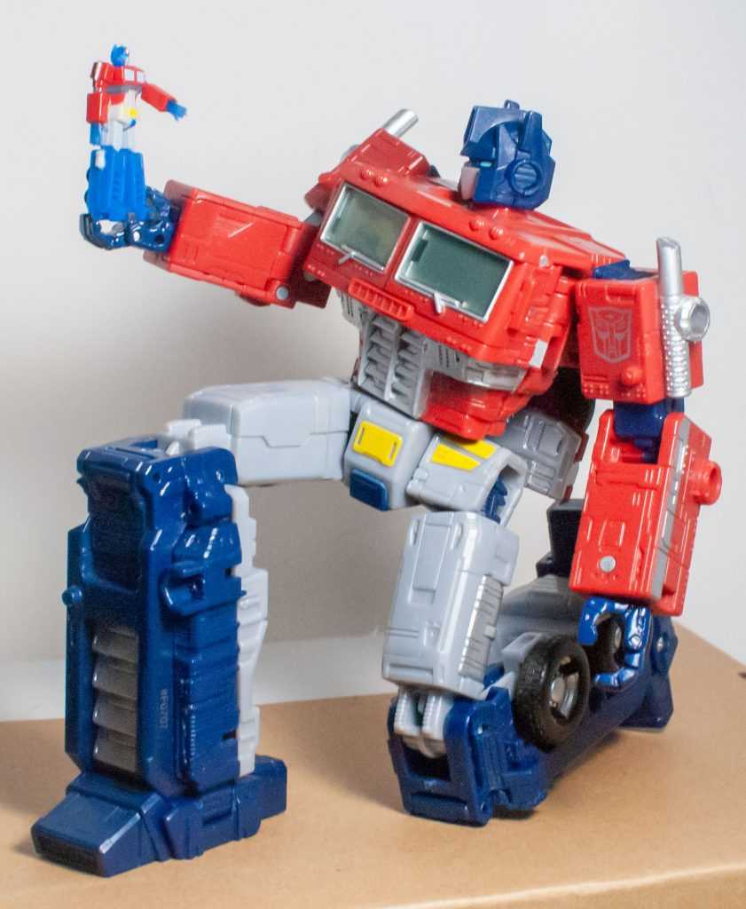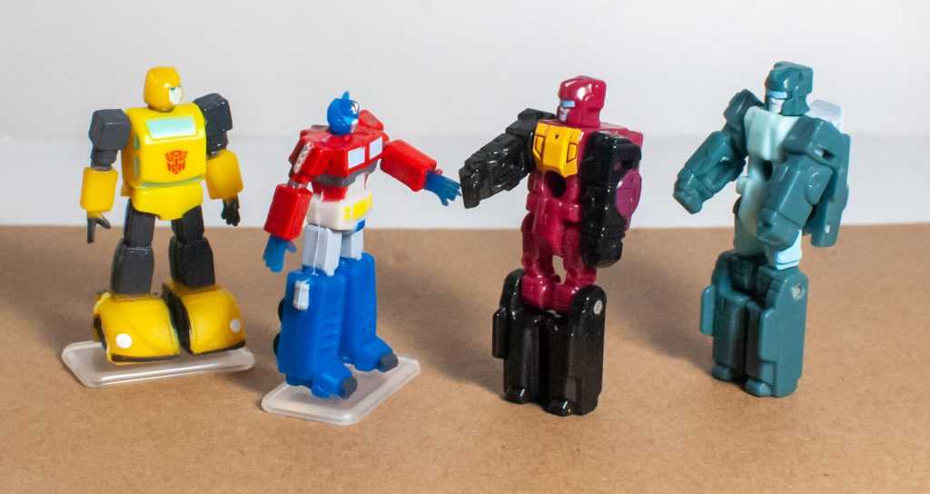 In terms of what they represent, these are 100 percent G1 cartoon designs, rather than, say, the “evergreen” looks, or toy-style designs (which would have maybe made a bit more sense, in my opinion). And, in person, the sculpts are pretty crisp and detailed for the scale! Optimus in particular has a lot of tiny molded details on him, including his truck-grill abs, ridges on his feet, patterns on his arm, it’s pretty neat.