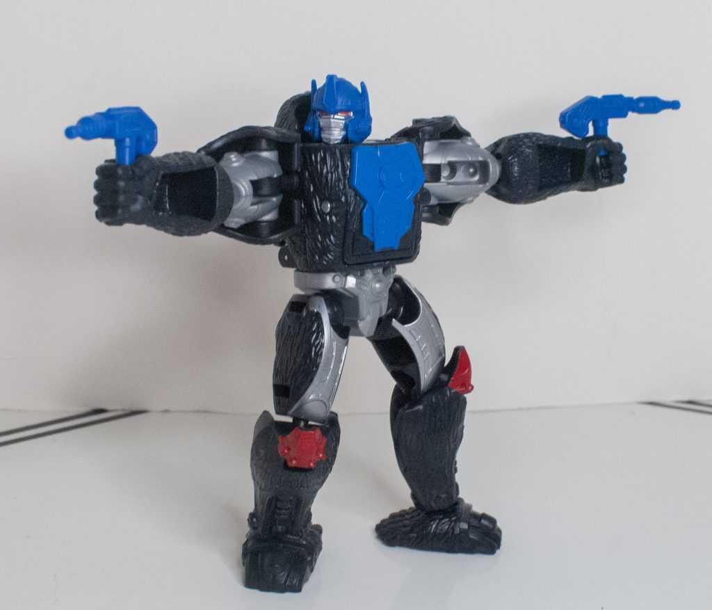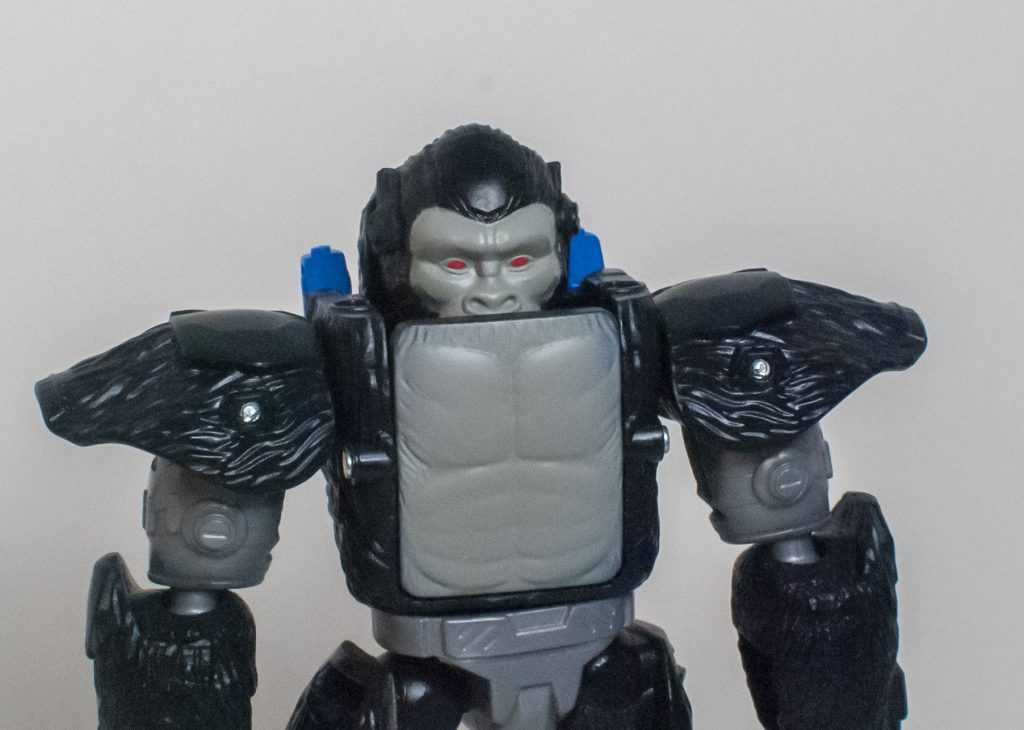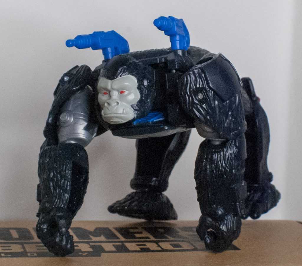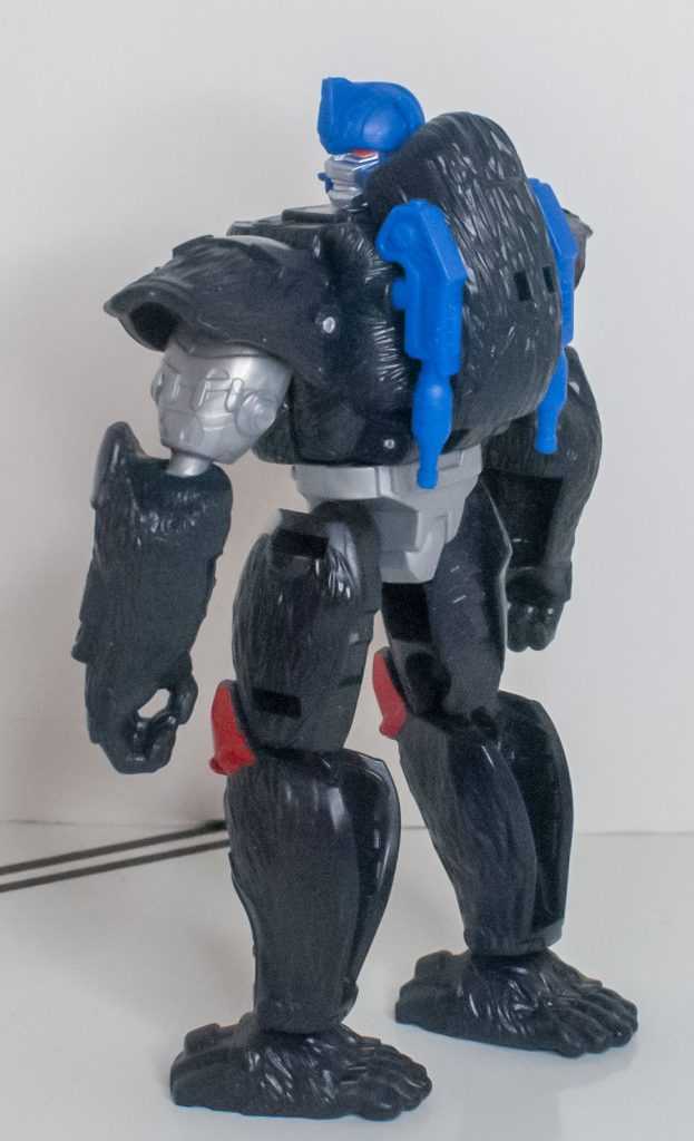He’s still got his twin lasers in this mode, and the instructions suggest stashing them on his back, though you could always just set them aside for a more realistic gorilla. Either way, you can do all the same stuff as in his robot mode, including Giving the Monkey a Gun.