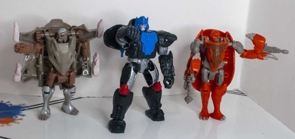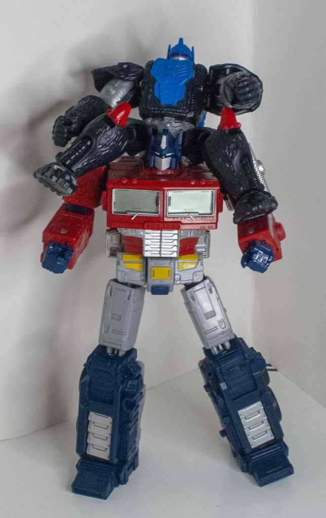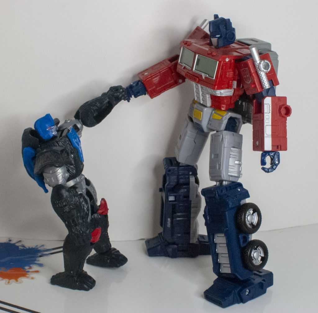 Like the rest of the smaller Authentics figures, Optimus Primal’s at an odd scale. He’s bigger than a Core-class, but smaller than a Deluxe class, and stands almost the exact same height as an old Bay-movie-era Scout-Class, or an old Beast Wars Basic (appropriately enough).