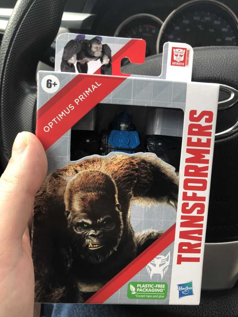 The sticker shock is real these days when you’re collecting Transformers. Mainline Deluxes and Voyagers still feel feasible, but Leaders are edging towards triple-digit Canadian prices, while on the small side of things, Core-class minifigures are inching up to 20 Canadian, making it hard to justify what they cost, especially when you’re in your 30s with rent, groceries, and gasoline to worry about. Because of that, Transformers Authentics always interested me. Basically, Authentics is a line of Transformers, in various sizes, that are designed to be cheap, with the “Authentics” name denoting the fact that they’re meant to compete with bootlegs and knockoffs, and be sold in the unusual spaces those tend to pop up in, rather than your Wal-Marts and such. For whatever reason, though, I’ve rarely seen them in Canada. I think I saw some in a board game store one time, and that’s all I can recall until now. But my local grocery store, of all places, had a peg of the smallest size of them (called “Authentics Bravo” on the peg, but not on the box), and I decided to give this one a whirl. The fact that he cost $7.99 Canadian certainly helped. And the fact that he’s Optimus Primal, of Beast Wars fame, of all things, also helped.