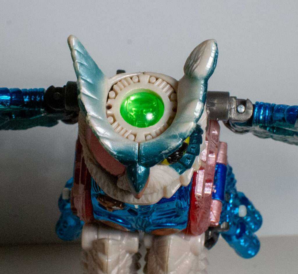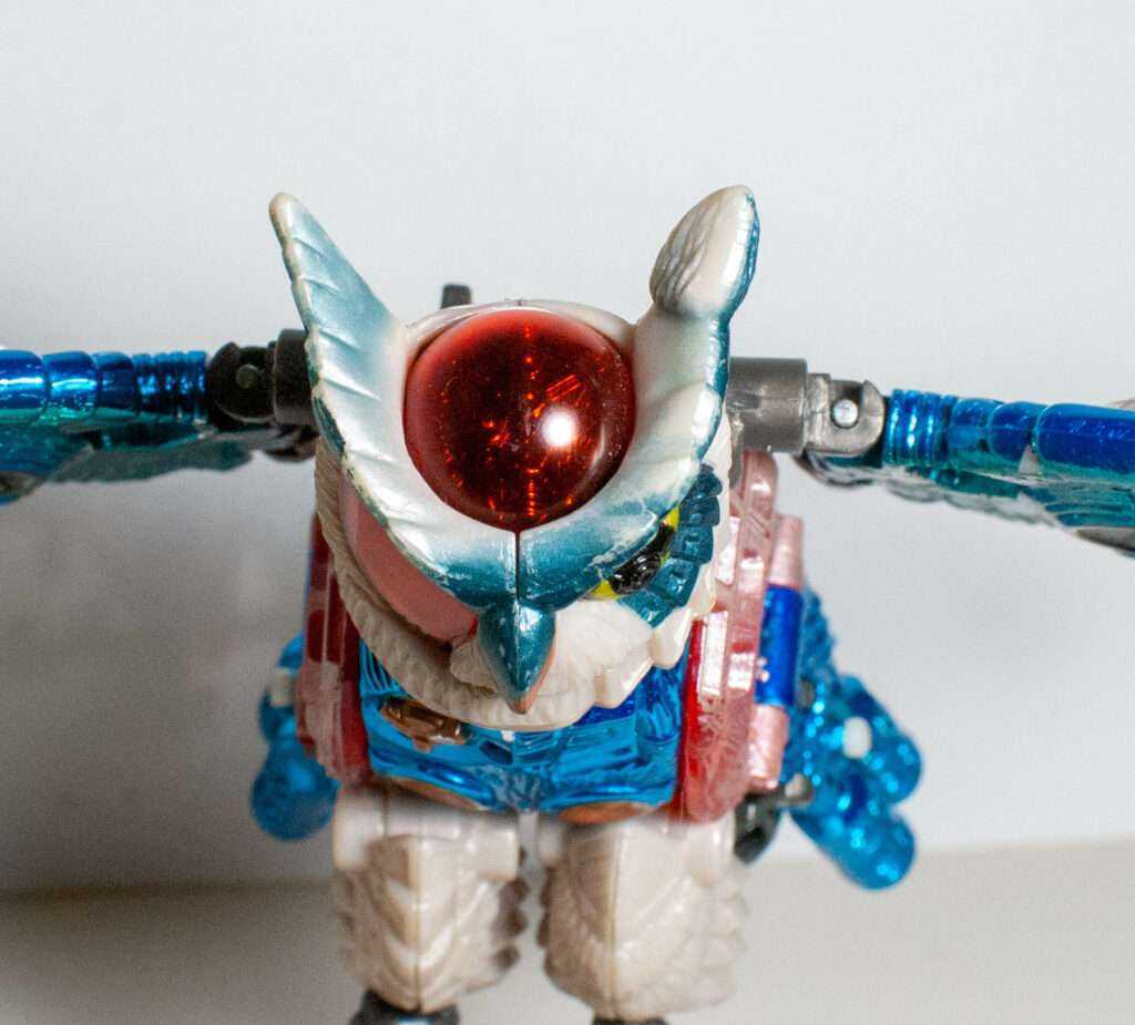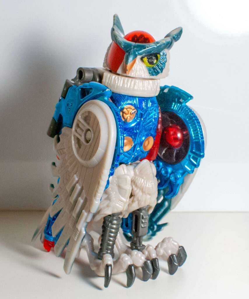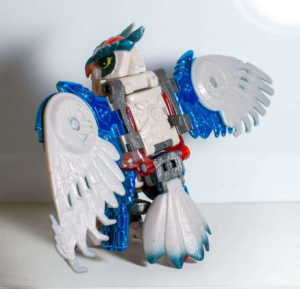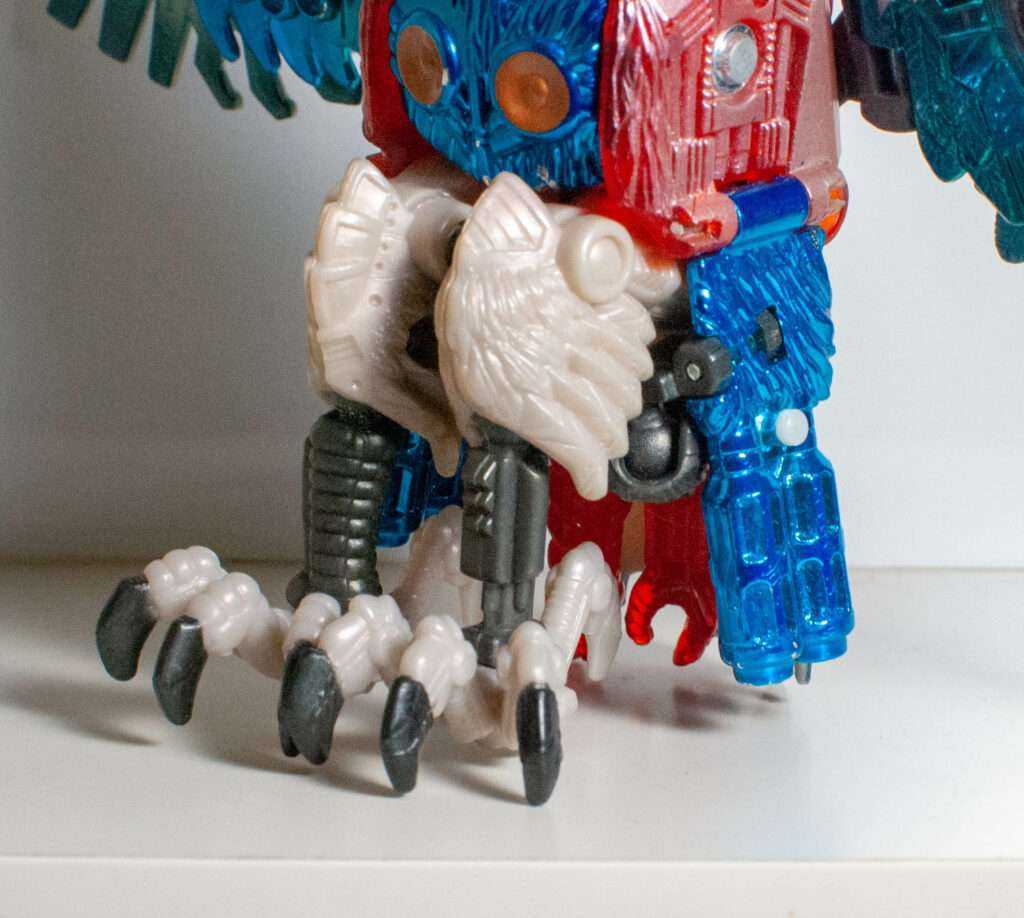 Deluxes have really never changed since the 90’s, and so this bird’s about in scale with your modern Generations ‘bot. This specific bird’s a cyborg representation of a Great Horned Owl, and there’s a lot to take in here.