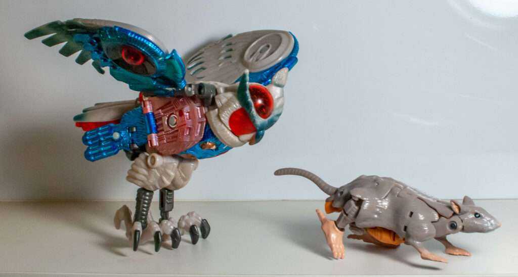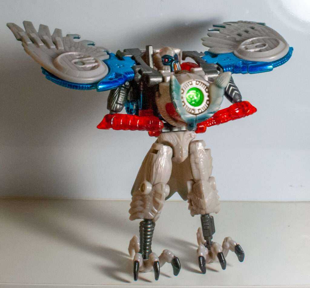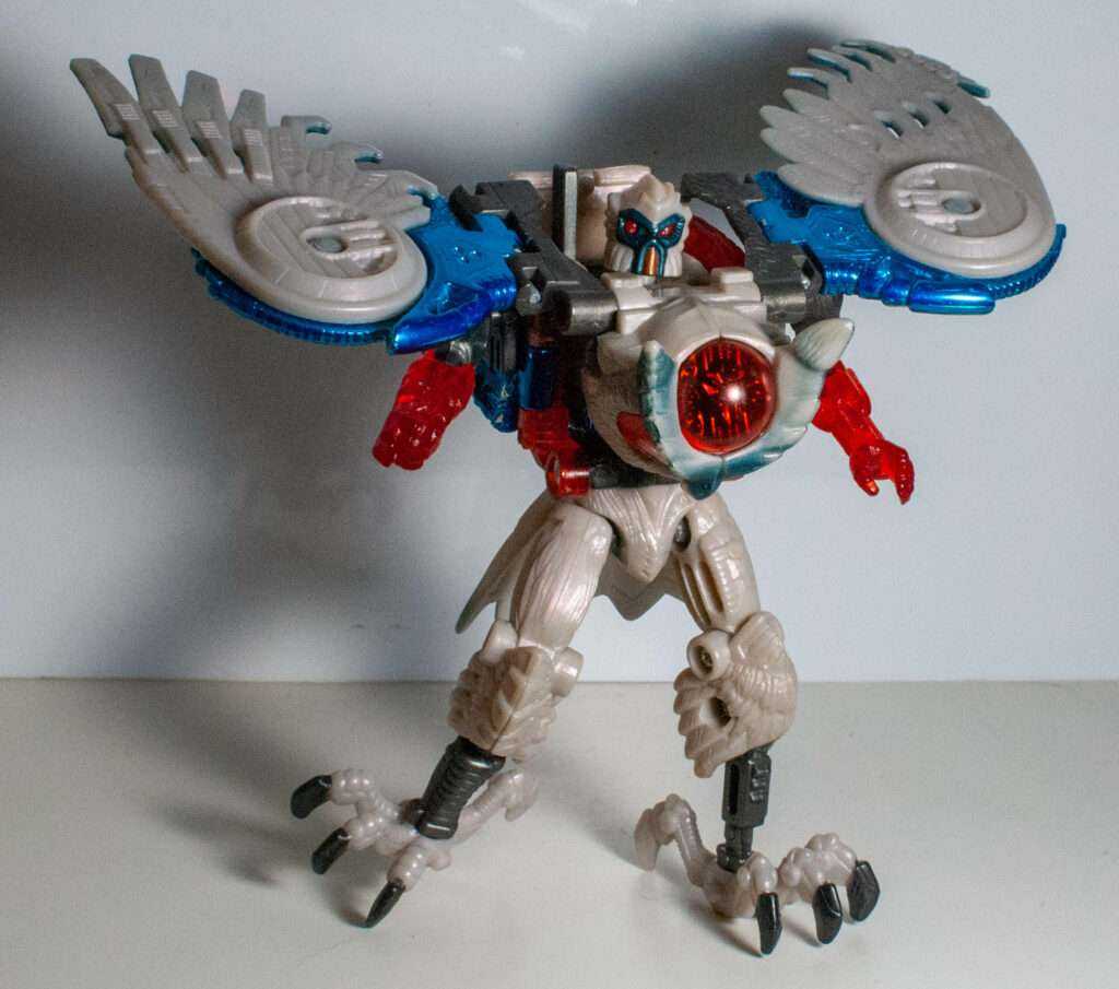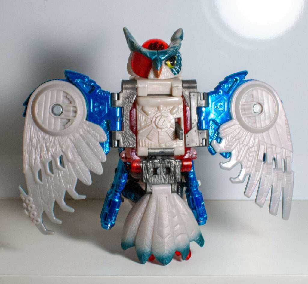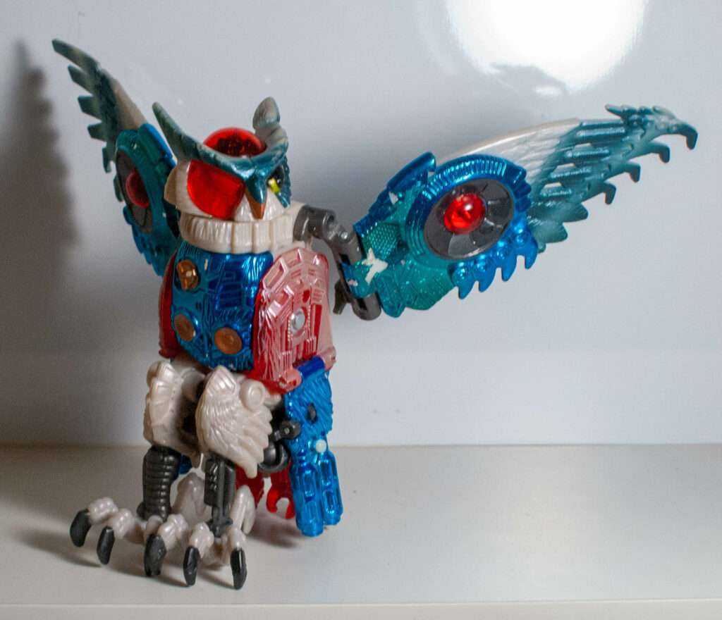 Deluxes have really never changed since the 90’s, and so this bird’s about in scale with your modern Generations ‘bot. This specific bird’s a cyborg representation of a Great Horned Owl, and there’s a lot to take in here.