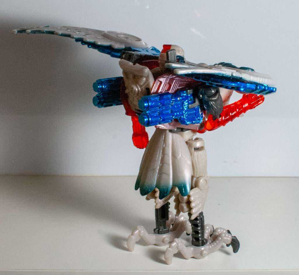 His other stability issues are that his head spins a bit too freely, and his wings don’t tab down as well as they could. Still, the core of the figure is stable enough, and it’s not like Victory Leo, where the whole thing’s in danger of coming to pieces. That, and he manages to avoid the usual birdformer pitfall of having a robot body trying to hide in his belly (even the excellent Kingdom Airazor couldn’t avoid this), so I appreciate this different attempt at playing Hide The Person.