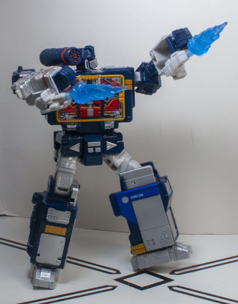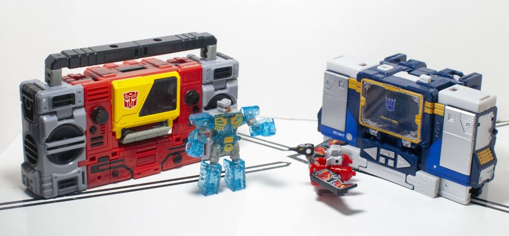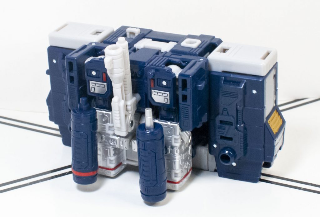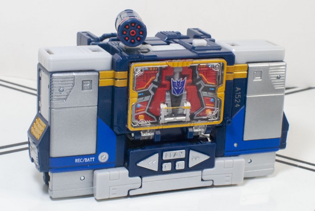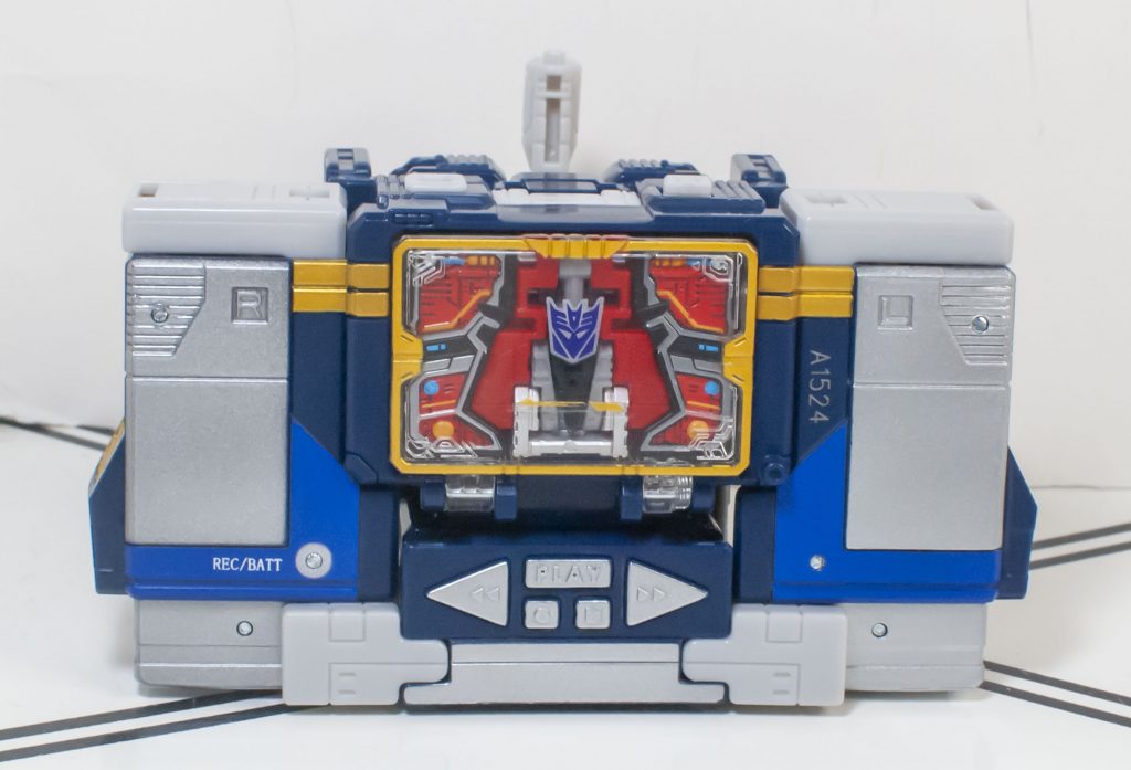 But at the end of it, you get a miniature tape player. Bearing in mind that this is an insane kitbashed retool of a Siege figure that was never meant to turn into this, I’d say it came out pretty well. I’d say the only downside is the backside, with its arms that hang out, and the accessories that have to just plug in there instead of hide away as batteries, like on the G1 version.