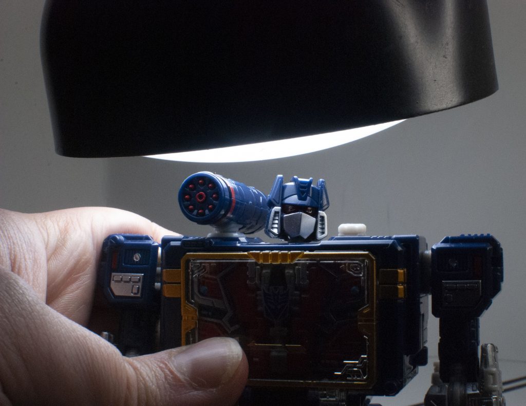 But is it good? I think so. These are three solid toolings. I’d like Megatron better if it was the Siege version, but it’s not a Siege/Kingdom Mirage quality drop, it’s a good, solid Voyager, albeit one that’s been hit by the QC stick a little bit. Soundwave and Laserbeak are still excellent, the stars of this set, and any vector to own them is worth pursuing. And Shockwave is a bit basic, but a very well-engineered update of the original. And the chair is just fun.