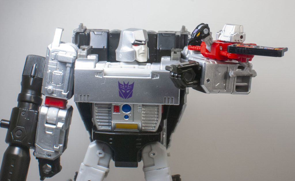 But this was also the first version of the tooling to get a deco that was both shiny silver (as opposed to flat gray), and didn’t have battle damage all over him, so Earthrise it is. And, to be fair, you can just chuck the extra cannon-spear-thingie in a bin. The figure’s still a perfectly cromulent G1 Megatron without it, pretty much just being his cartoon character model with some extra tank treads in the back.