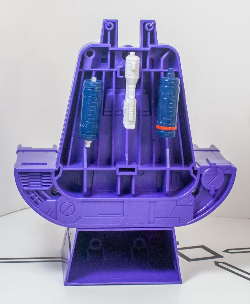 It’s got no paint, and all it has for features is a few 5 millimeter ports on the back for accessory storage, some of which are really hard to get to, because they were designed to specifically work with Starscream’s bits and bobs.
