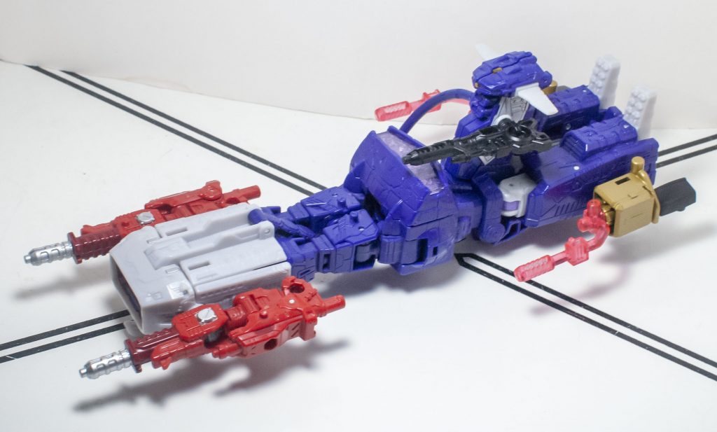 For features, he’s got his shoulder cannon, his round laser pistol, and that strange, long, unfolding gray gun that feels like it was meant to be handed off to Megatron.