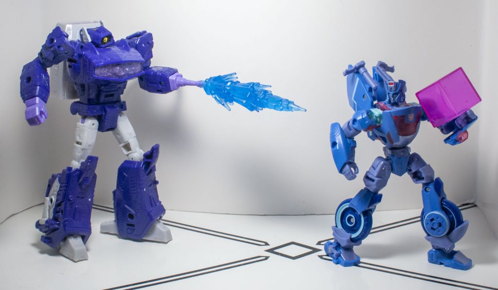 And let me restate this right off the bat: This is more of a big Deluxe than a little Voyager, to me. But in an odd boxset release like this, size class stuff matters less, so he’s allowed to just be a well-made Shockwave, which he is! It’s only logical, after all.