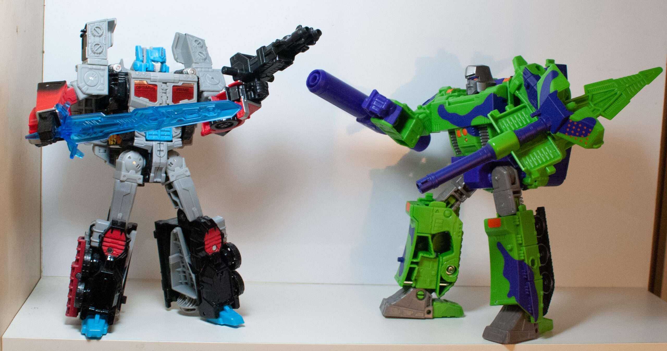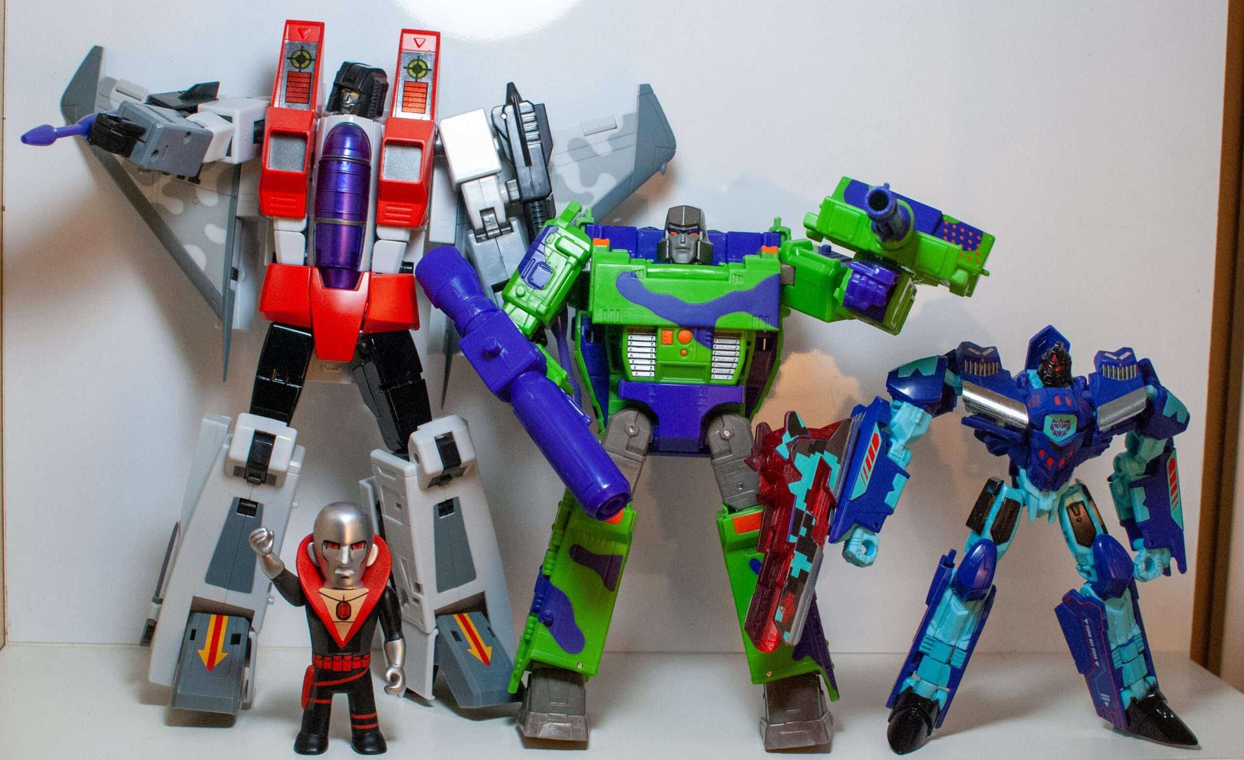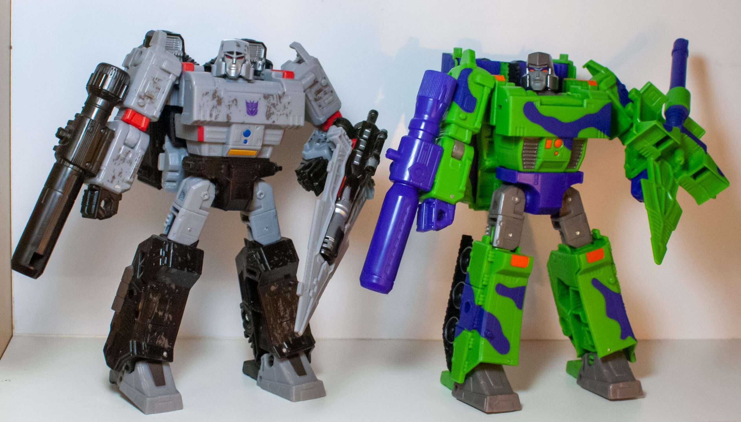 If I remove the color from my vision, and consider the Earthrise Megatron figure that this is repainted from? Taken on its own, pretty great, a solid Voyager that’s fun to mess around with, and happens to come with an odd accessory. Compared to Siege Megatron, though? Aside from the fixed feet, it doesn’t improve on him, and might even be an extremely tiny bit of a downgrade, thanks to that strange tank-parts-spear replacing a better accessory. The thing is, if you’ve been collecting the past few years, you probably have some version of him already, whether it’s the original, the cell-shaded cartoon version, or the shiny Netflix release, and it’s not really any kind of big upgrade if you have that one. But if you don’t have one, and you’re looking for a Generations G1-style Megatron, the Earthrise one’s still really good, but if the Siege tooling is available cheaper on the aftermarket, you might be better off grabbing one of those previous releases.