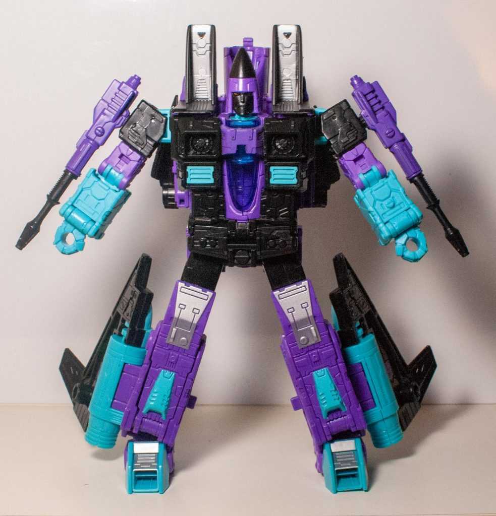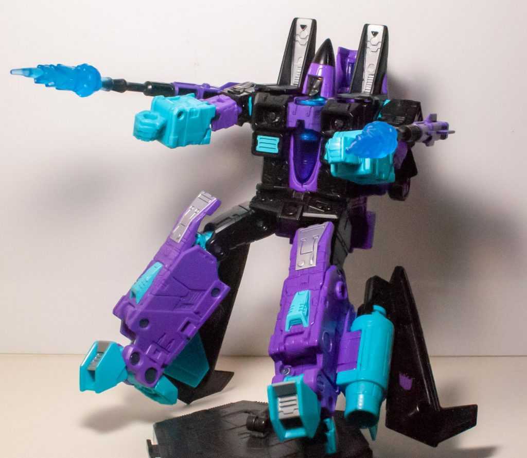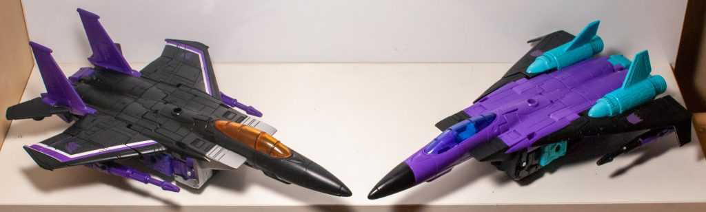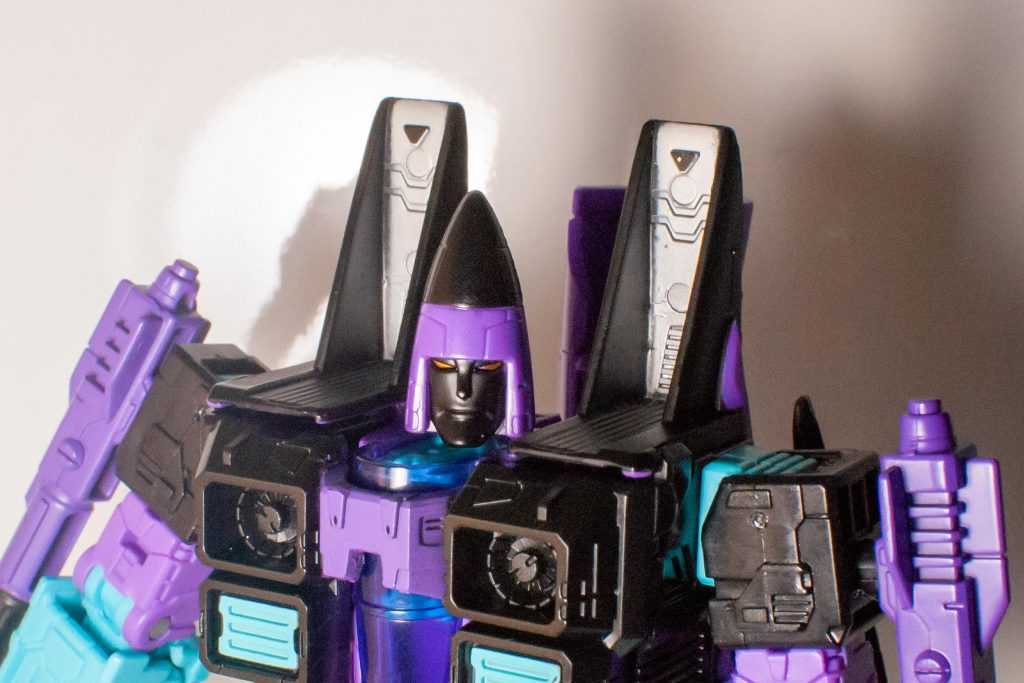 On one hand, this feels a little perfunctory as far as homages go, and I keep thinking there’s more they could have done one way or the other. Make it “animation-accurate” and give him a Starscream or Skywarp head instead, or make it toy-accurate and tampo some of those stickers on, maybe even tool up his different accessories. It’s not exactly low-effort, but they definitely kept it a bit too simple.