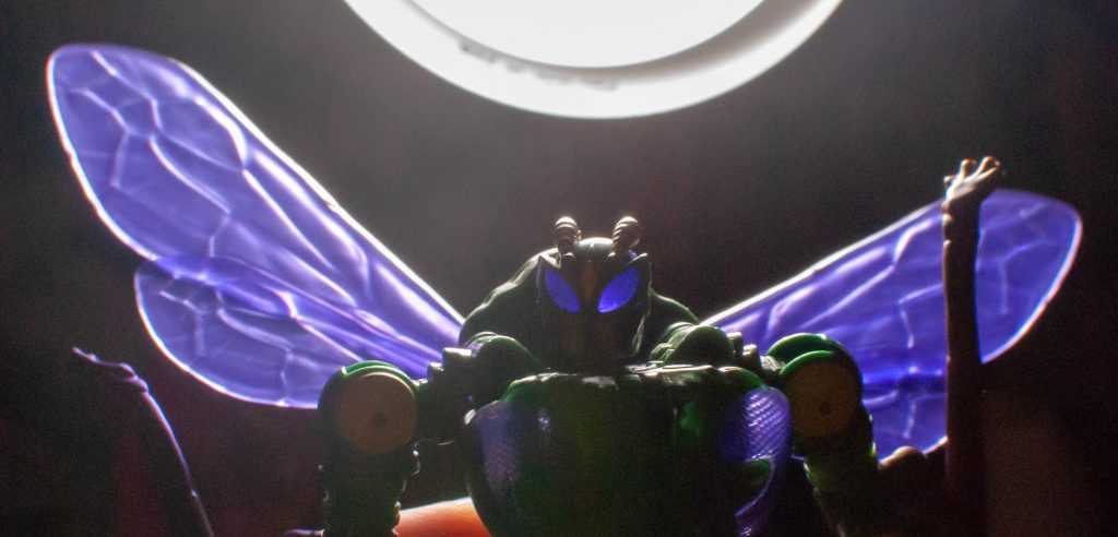 I was expecting this guy to be a statue outside of his wings, but pleasantly, this wasp’s a little more poseable than you’d expect, in that his head can raise and lower, and his mandibles can move.