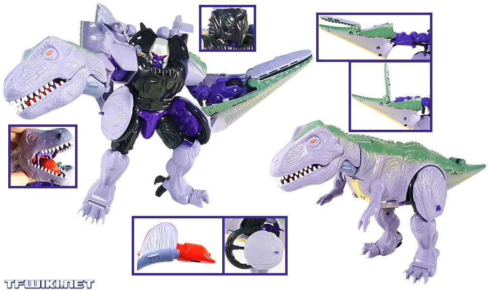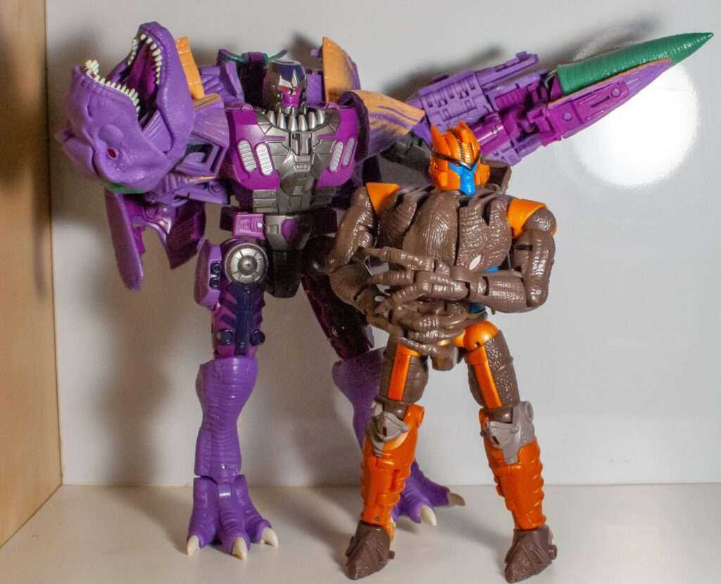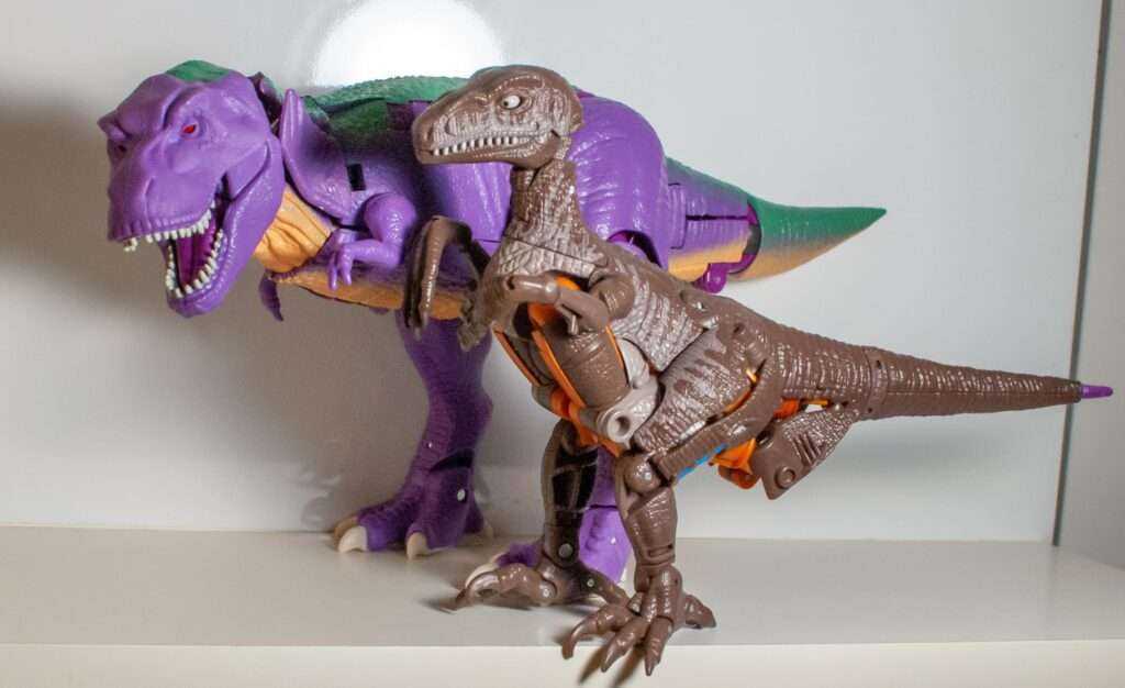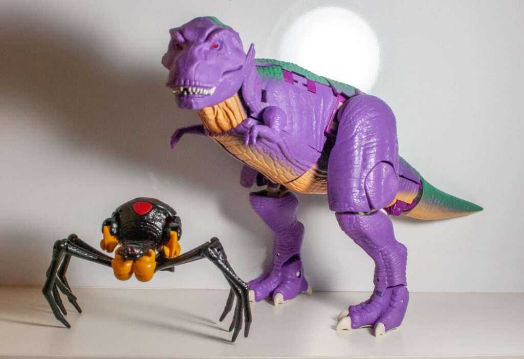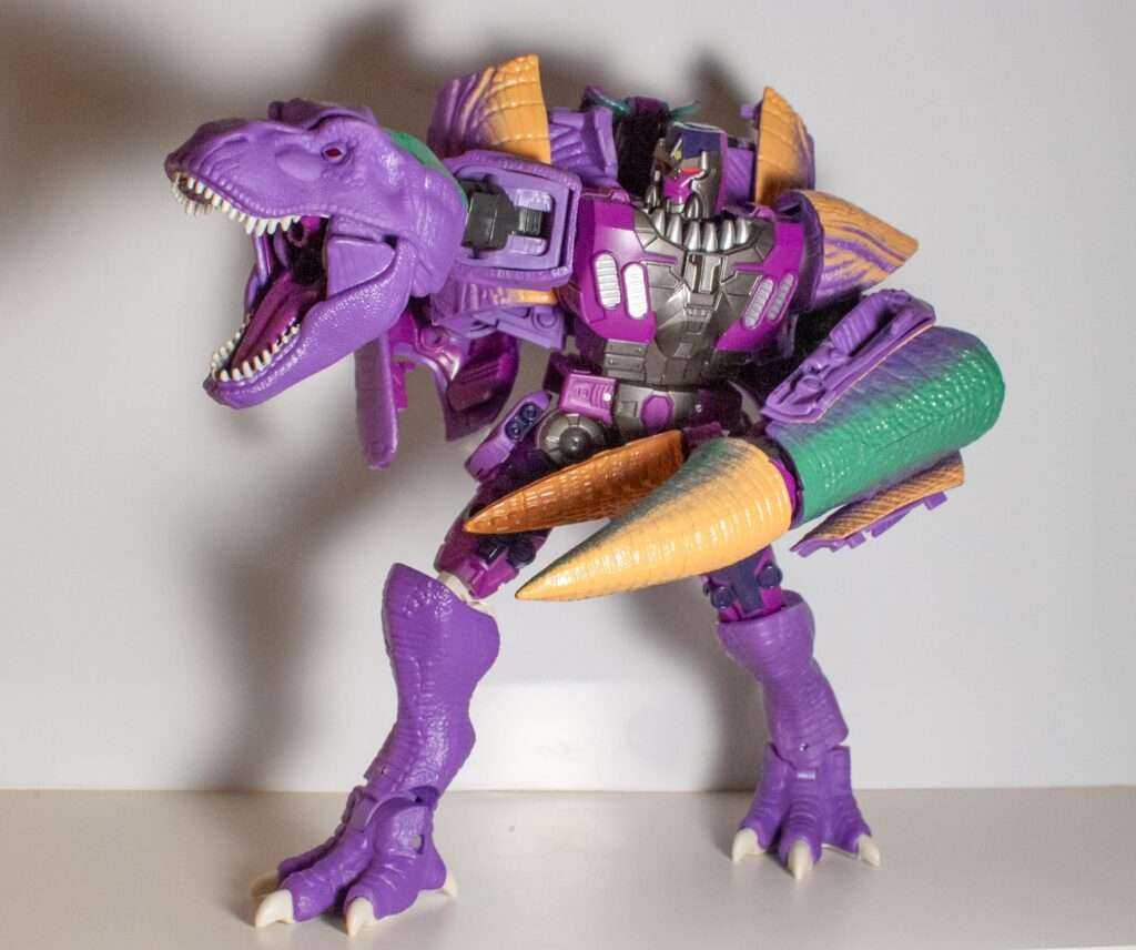 This is, without a doubt, the best Kingdom figure I’ve looked at so far. I think he outdoes the original toy, even, depending on how you feel about the importance of spring-loaded and water-squirting features. What this guy brings to the table is a perfect robot mode (save for the one really big oversight of the un-removable tail), and an unbelievably well-done T-rex mode. He’s accurate, big, chunky, poseable, stable, well-engineered, actually fun to transform, and everything works. He’s weighty, satisfying, and worth the Leader-class pricepoint. It’s just what this bad guy deserves.