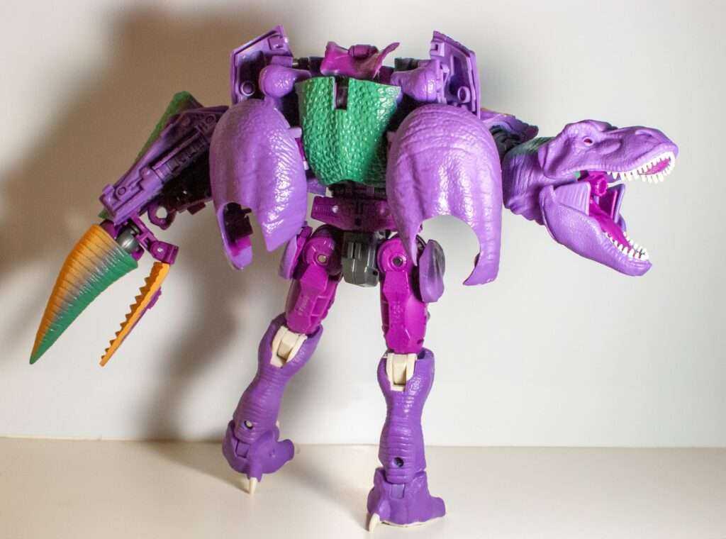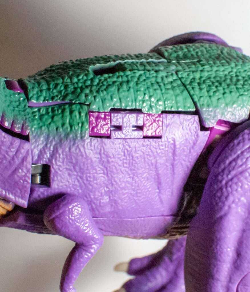 Secondly, his one real fiddly bit comes from making sure the hide on his Rex-mode back is securely pegged into a couple of upward-facing tabs on his hips, again for stability. But both of these are steps I figured out fast.