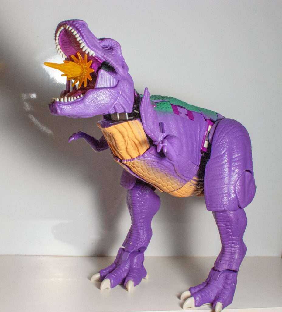 Again, he’s got no gimmicks, save for the effect part in the mouth, and the holes in the feet, but c’mon. He’s a big T-rex. That’s it, that’s the gimmick.