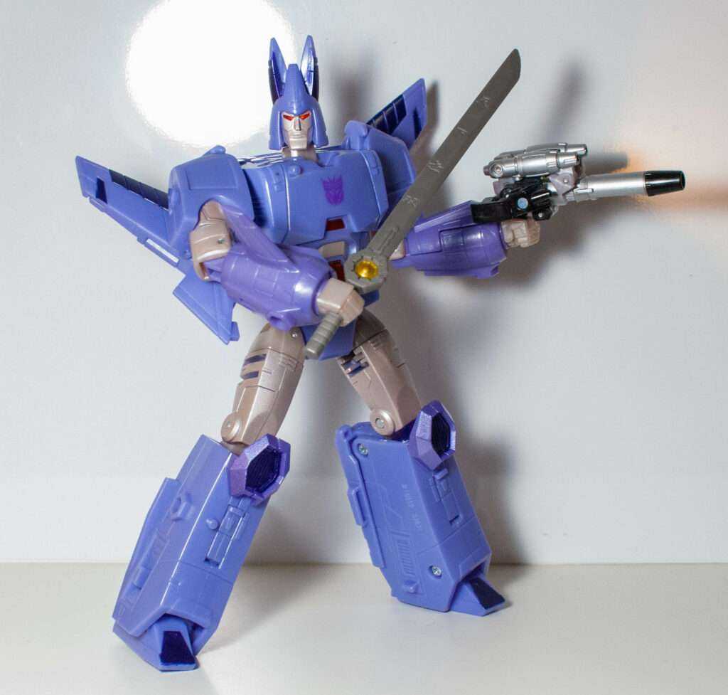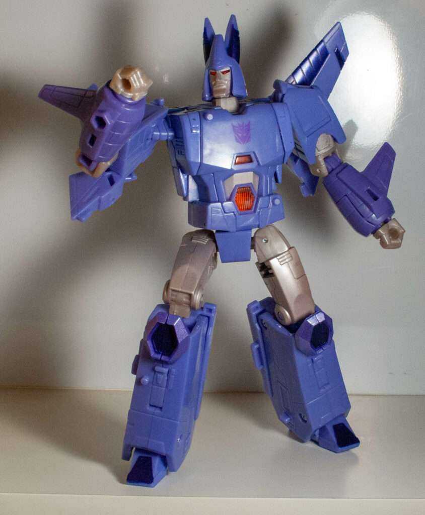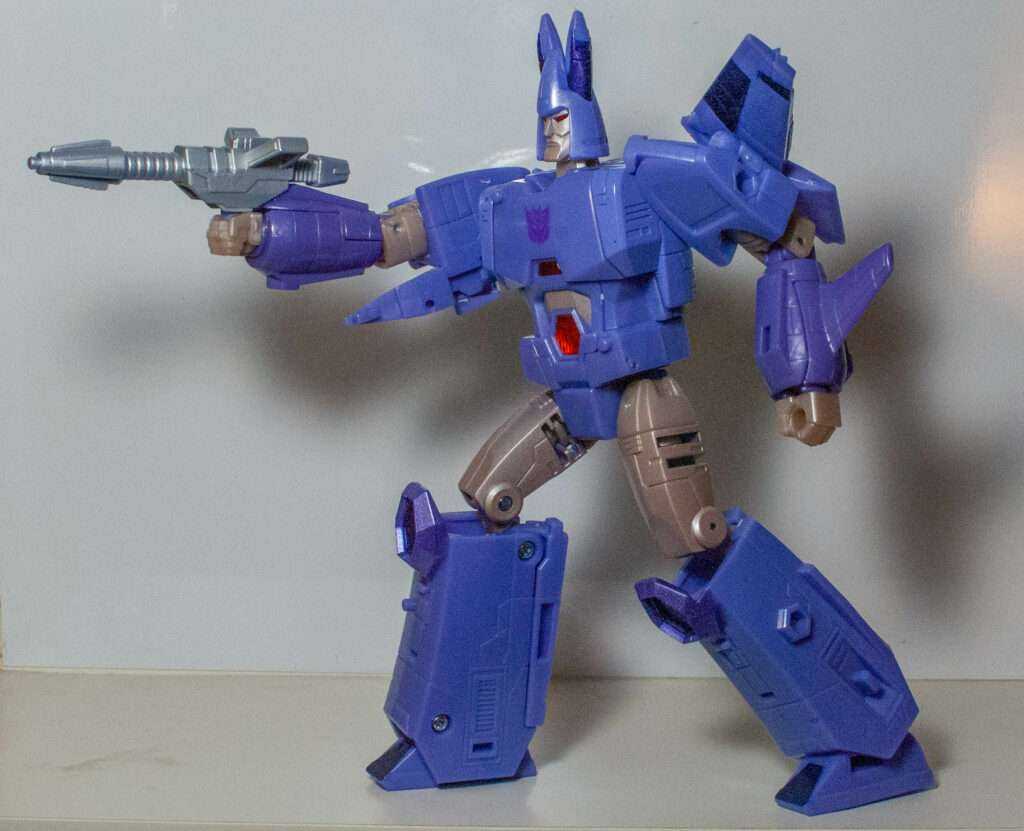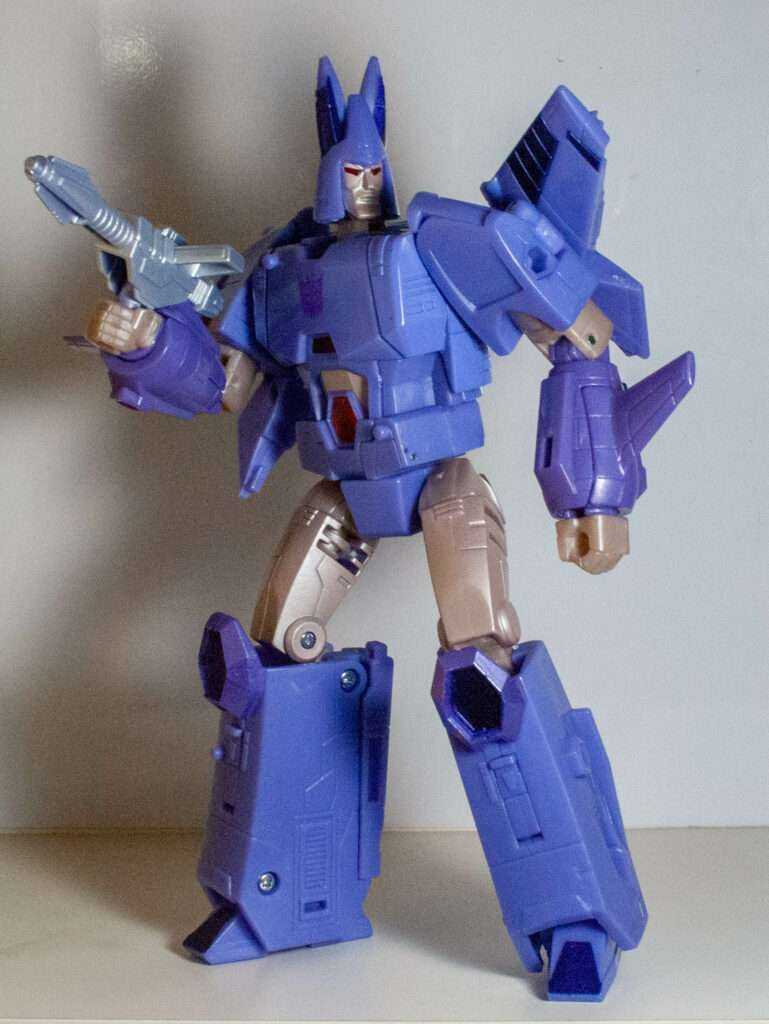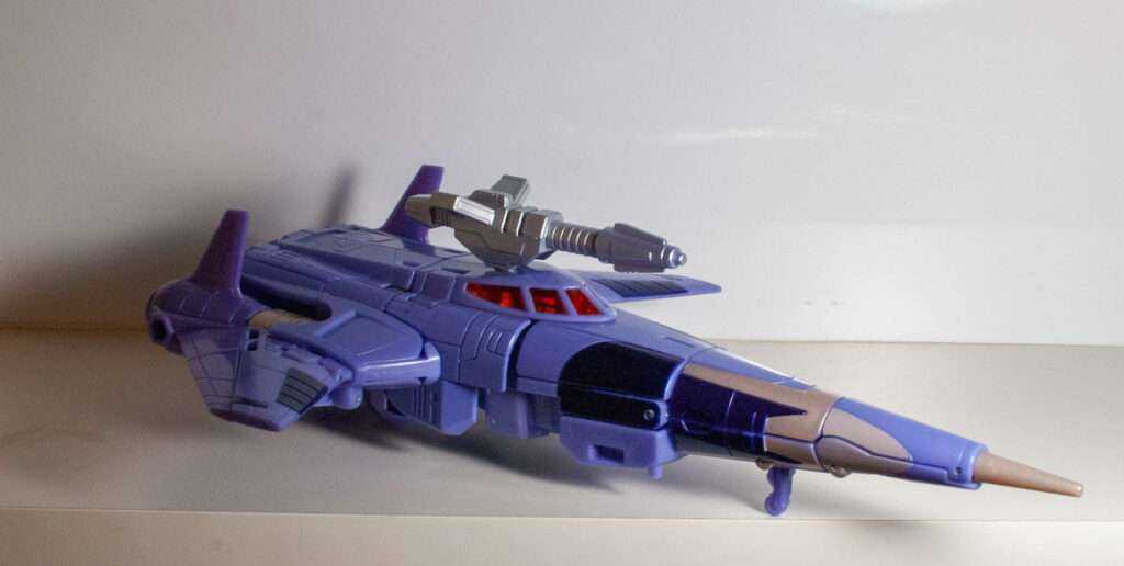Cyclonus always had an impressive jet form, a retro-futurist sleek wedge with two forward-facing wings, and this version renders it impressively sleeky, with its long nose, and unbroken curves. Once again, it’s surprisingly clean, and just looks good. It has that certain factor that makes you want to pick it up and swoosh it around.