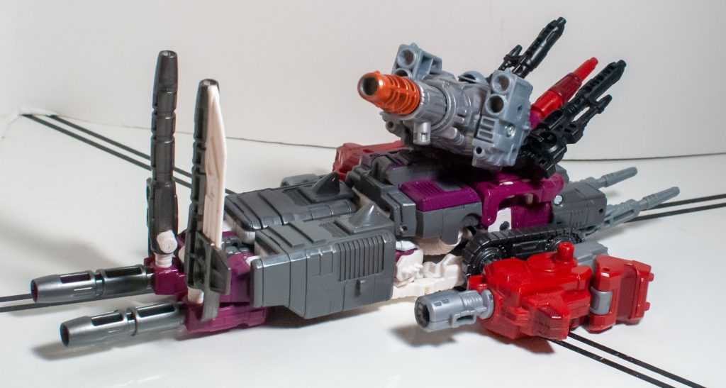 Three quarters of the alternate mode are fairly stable, but the front chunk sometimes causes problems where the robot shins tab into the rest of the body, and I, again, find myself squeezing them into place a bit too often.