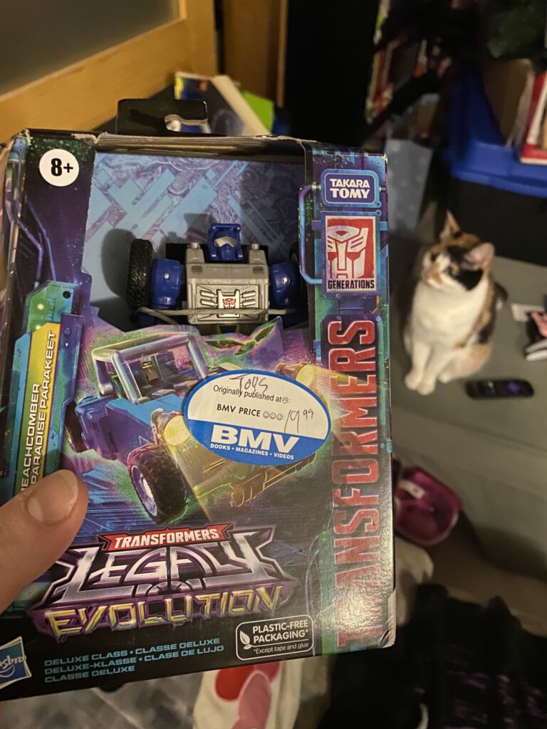 But somehow, for some reason, about a year and a half after his extremely limited release, I happened to find a mint-in-sealed-box one on sale in a used bookshop in Toronto, called BMV (no, this isn’t sponsored, it’s just a cool place.) BMV also sell action figures, so them having Transformers in general isn’t odd, even if them having this one was.