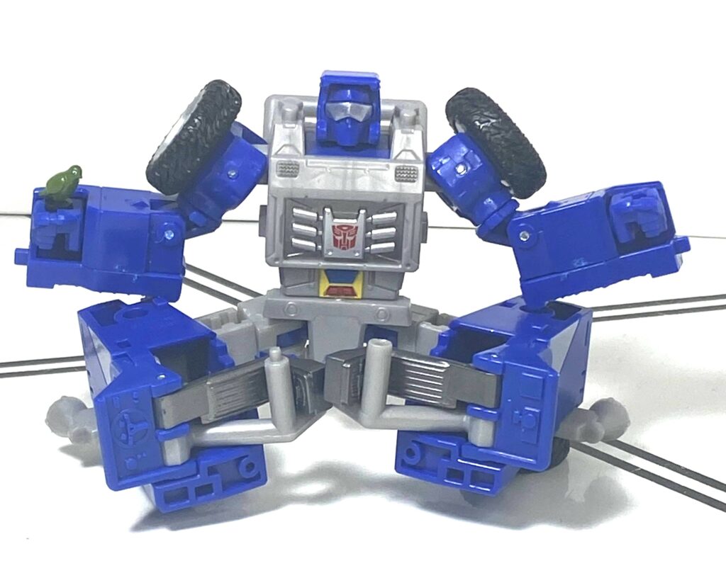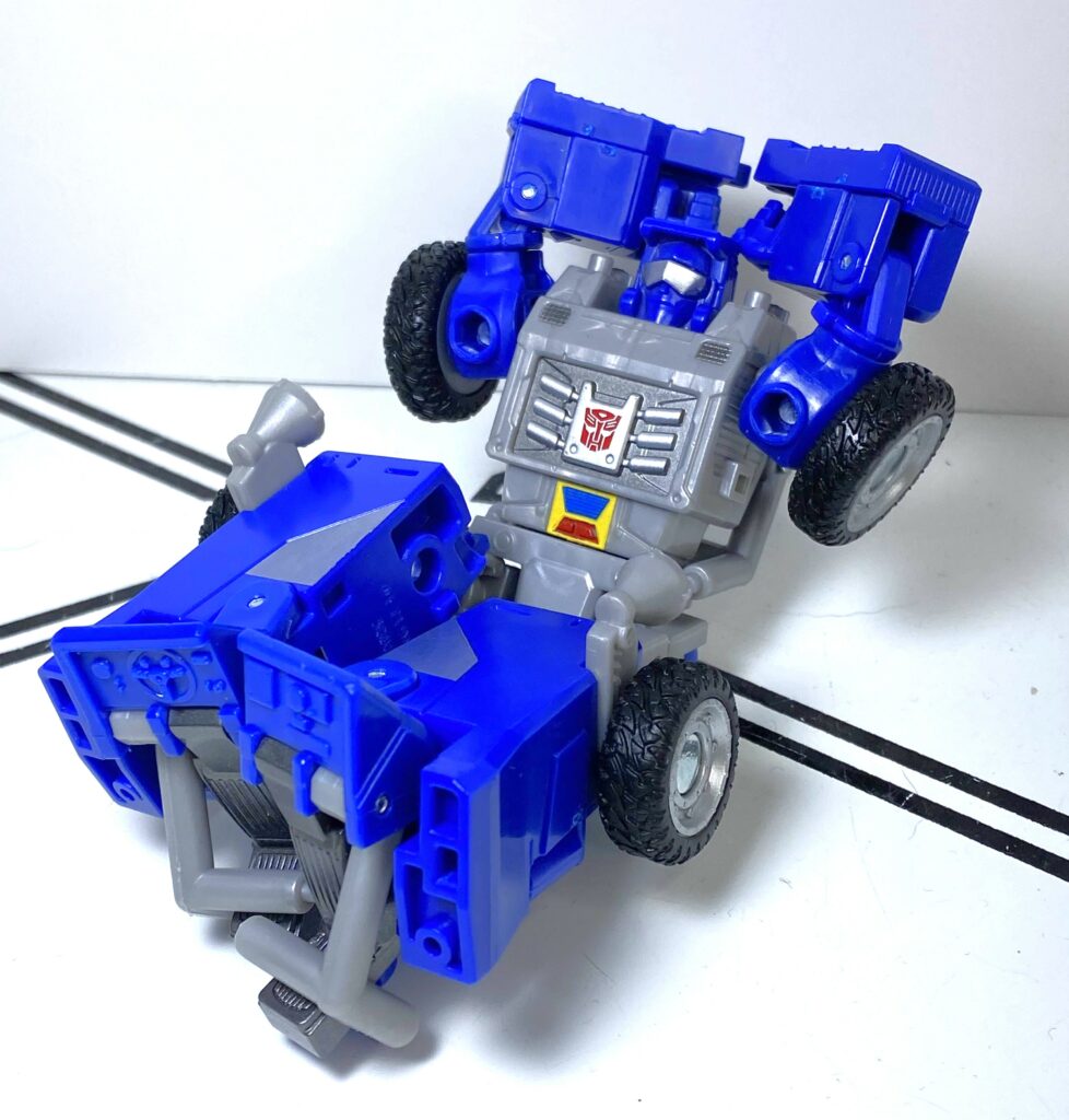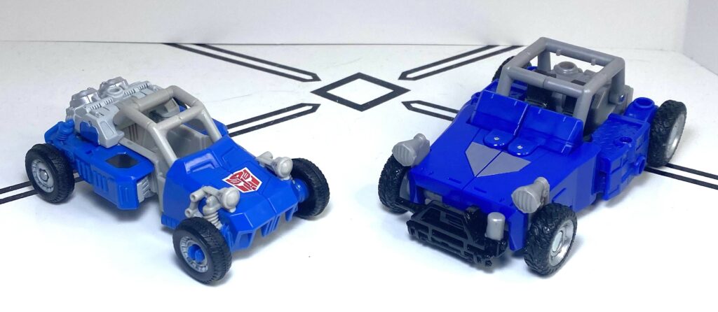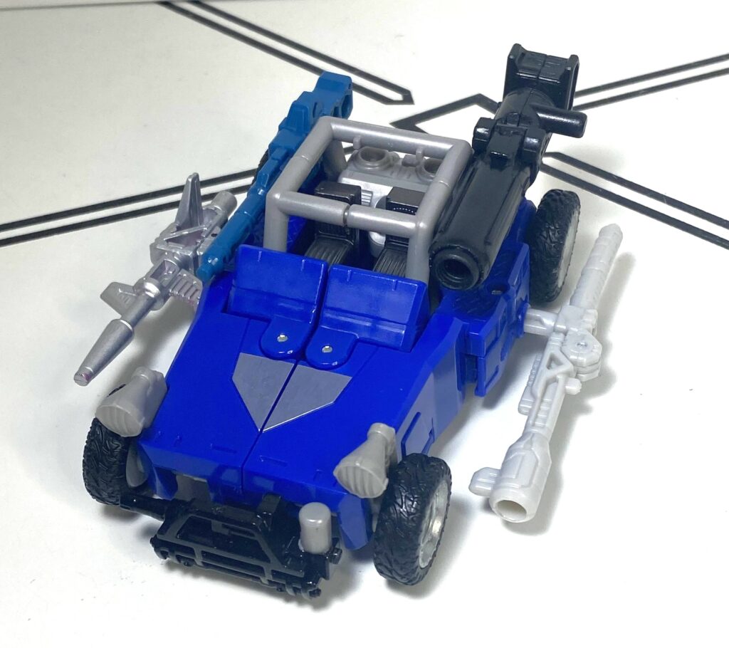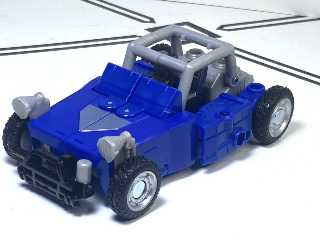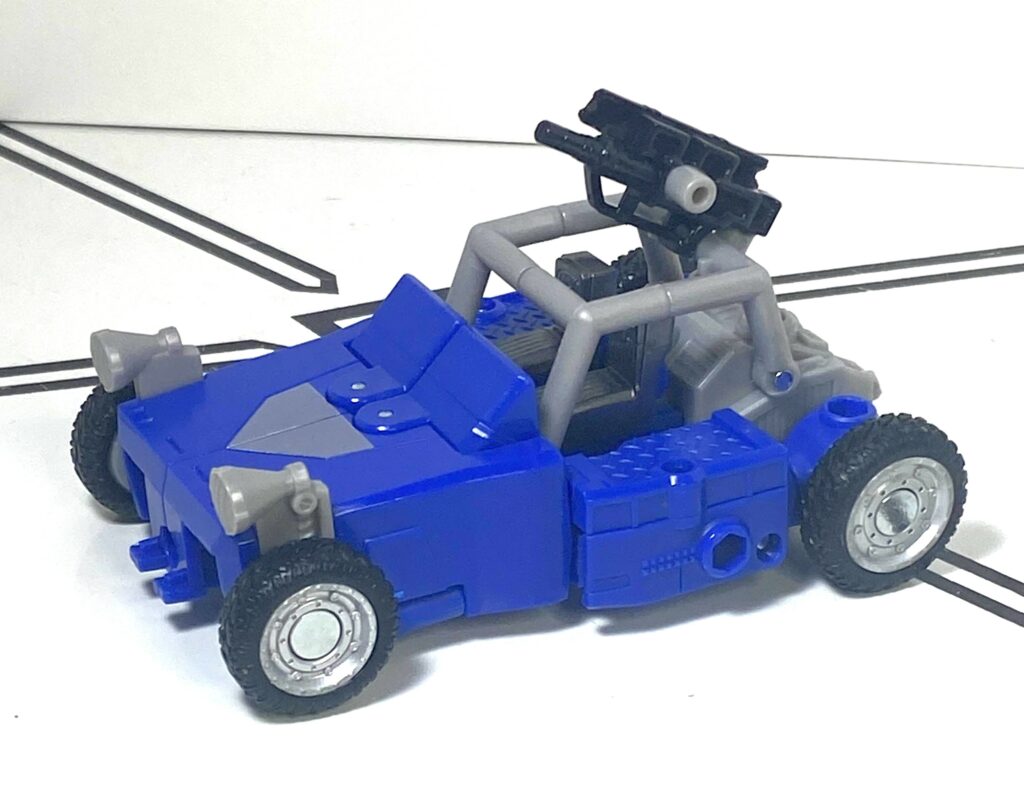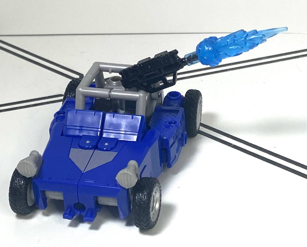 I often have to undo his vehicle mode front, and try again, and make little micro-adjustments to try to make the buggy’s front end, and his arms, stay straight and flush. It’s not the worst problem, it’s just a bit of a learning curve, but, for comparison, the Power of the Primes version had a transformation you can do in 30 seconds or less, without these little issues busying it up.