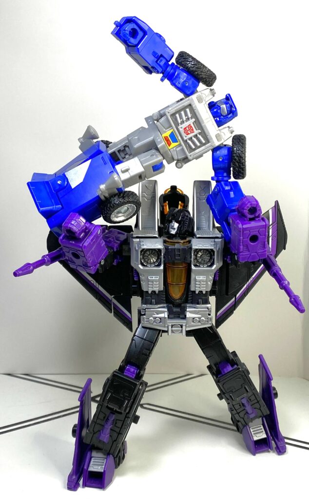 That being said, the Legacy version’s got some new wrinkles to it. There’s now some panels at the backs of his legs that need to be opened and shut, but more critically, his arms now need to do a complicated thing where you have to tab them into his sides, and also tab them into the folded-up bottoms of his feet at the same time. It’s a tricky move to pull off in a way that doesn’t leave either his arms, or the front of his vehicle mode askew.