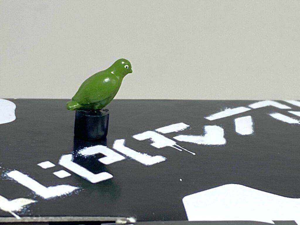 The only thing Paradise Parakeet’s bigger than are those rice-sized minifigures meant to go with Haslab Unicron, and, just like those, I’m afraid of losing this guy forever if he takes a tumble off my desk, or if I, like, sneeze too hard. Still, it’s a very well-sculpted, detailed bird for the size, and they even managed to paint on tiny little yellow and black eyes, with pupils. It’s on a black 5-millimeter base, too, so the bird can perch pretty much anywhere.
