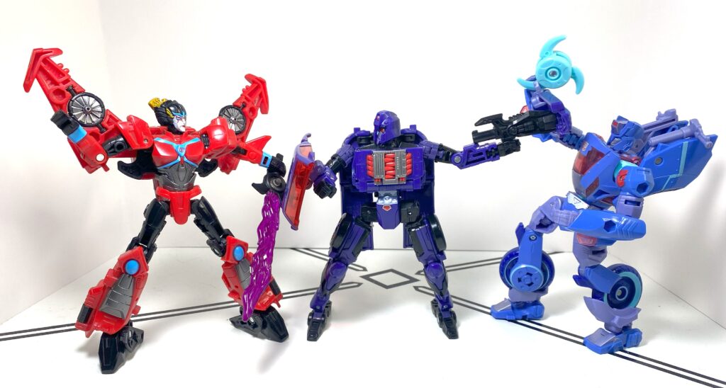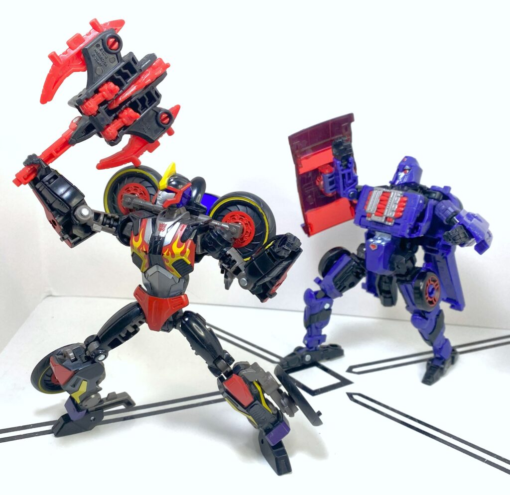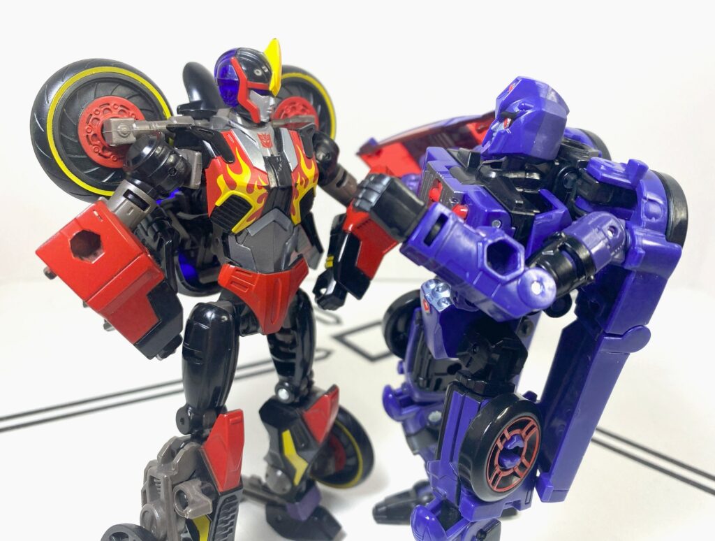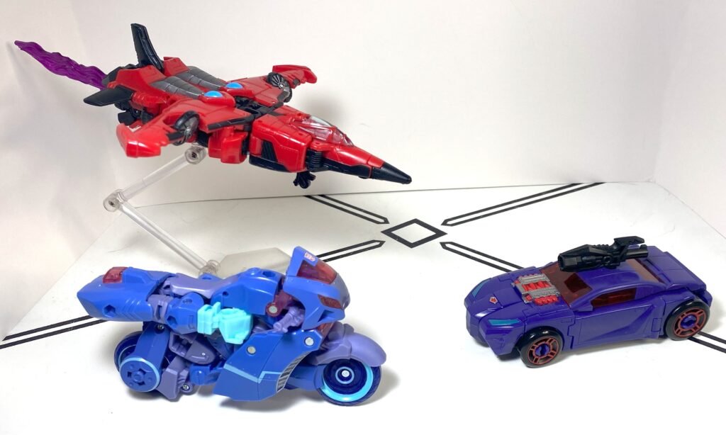 I think this figure’s decent, but flawed. That said, I can also see why other people outright dislike it. I don’t mind the conceptual choice to basically make her a Side Burn pretool that also qualifies as a homage to multiple Shadow Strikers, but I also get why one would rather she get her own bespoke design, especially since she’s not really the Cyberverse version, like it says on the box. In terms of how the figure actually is, she’s got a bunch of little tolerance issues with her joints, accessories, and transformation, and is a bit more fiddly than she should be. But none of it’s a figure-killer, and there’s enough goodness here, between her flexible accessories, good articulation, and other little neat things. Still, this is a “fine” rating, and not a “great,” and if you’re not specifically after the character, it’s skippable, but worth getting if you need any Shadow Striker, or just want to buff up your ranks of Evil Women.
