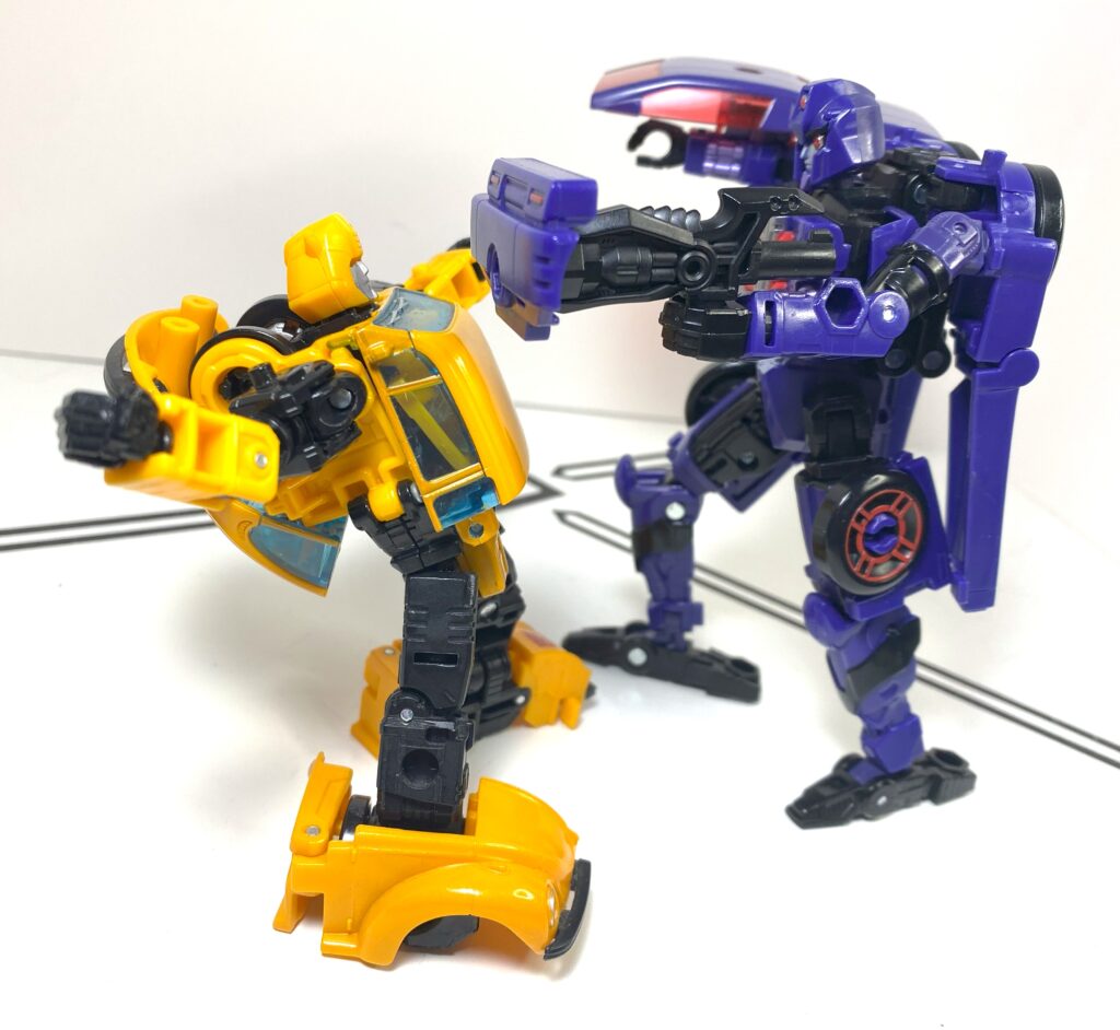 Described as a self-sufficient criminal, Shadow Striker had a couple appearances in convention comics, but stayed obscure. There was also a Bayverse version of her, a tiny little repaint of G1 Wheelie, released in a two-pack with a Bumblebee minifigure, with a bio note describing them having an intense rivalry (again, this’ll be important). Again, she was fairly obscure.