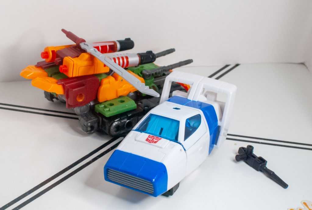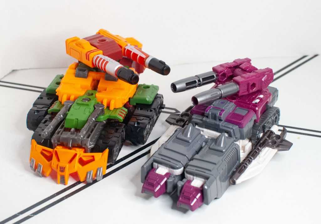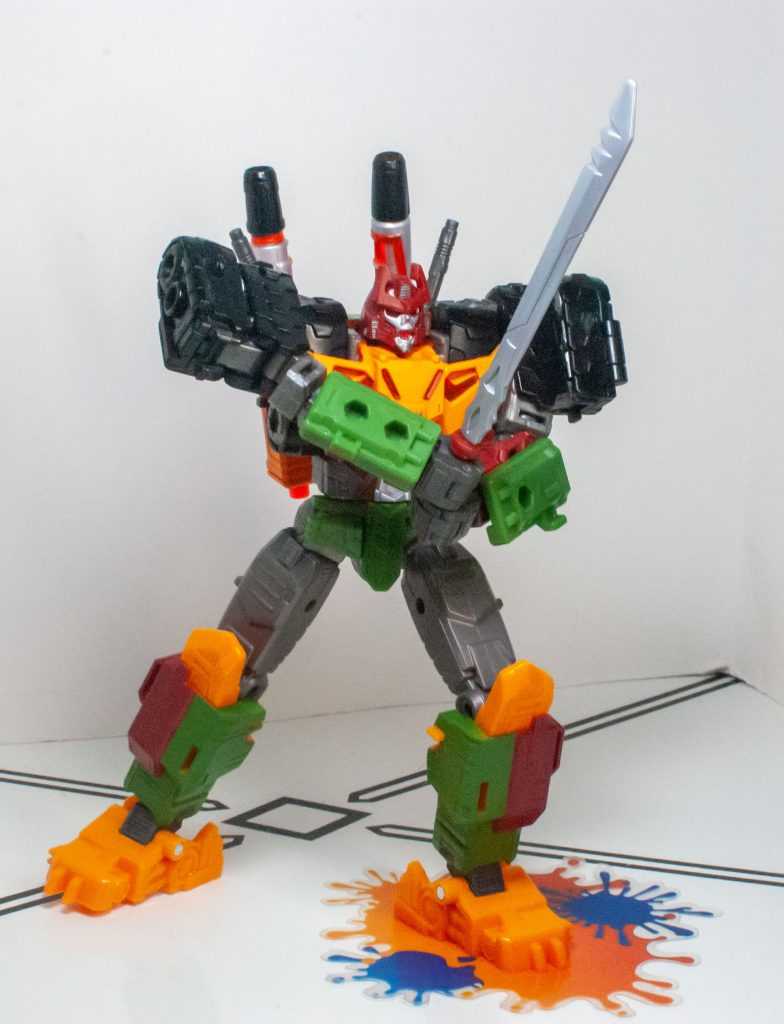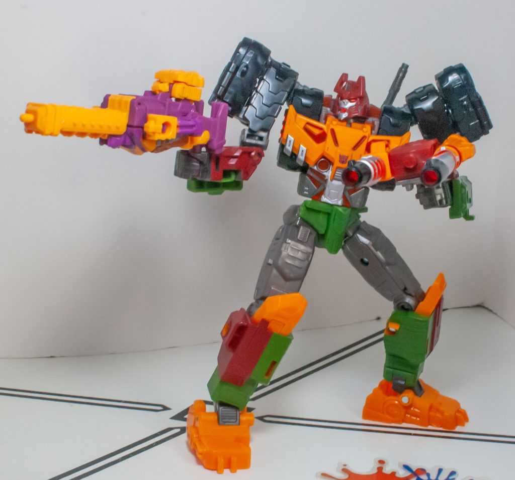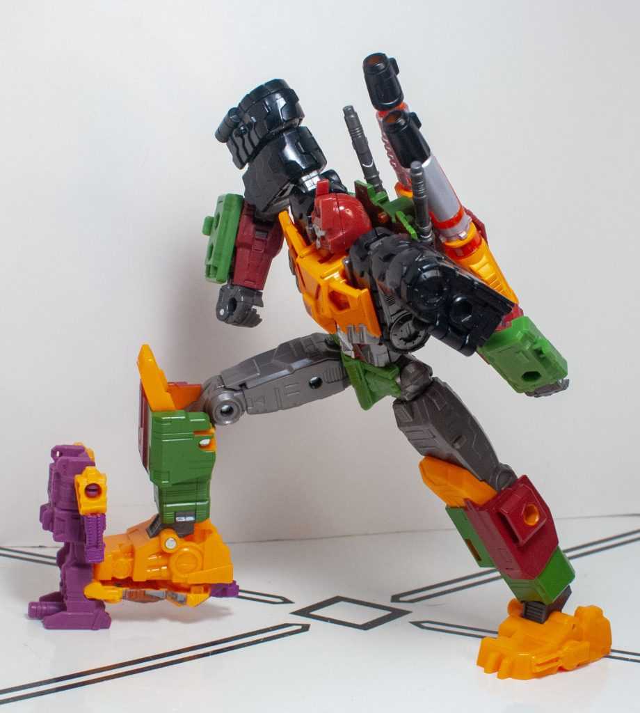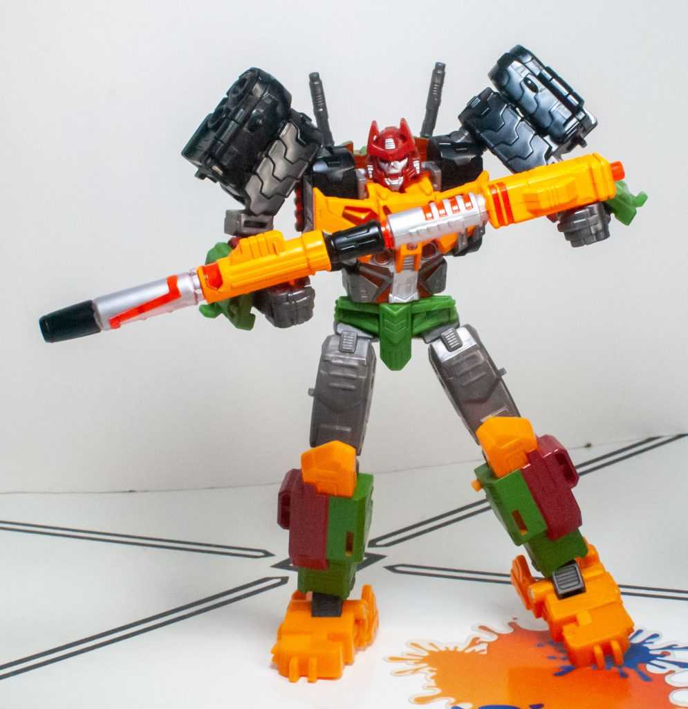 Again, Alex Milne gave him a really distinct, unique tank mode, with four guns, double treads, a big cowcatcher-type thing upfront, and that’s all replicated here, just in funky colors.