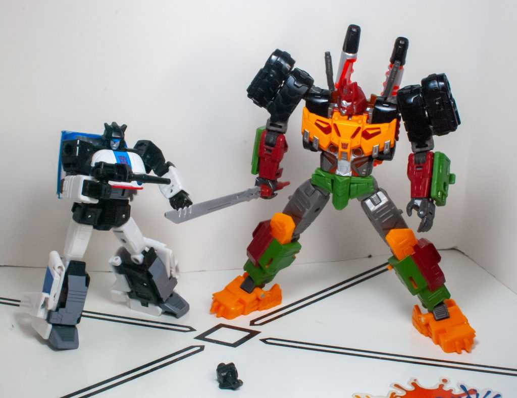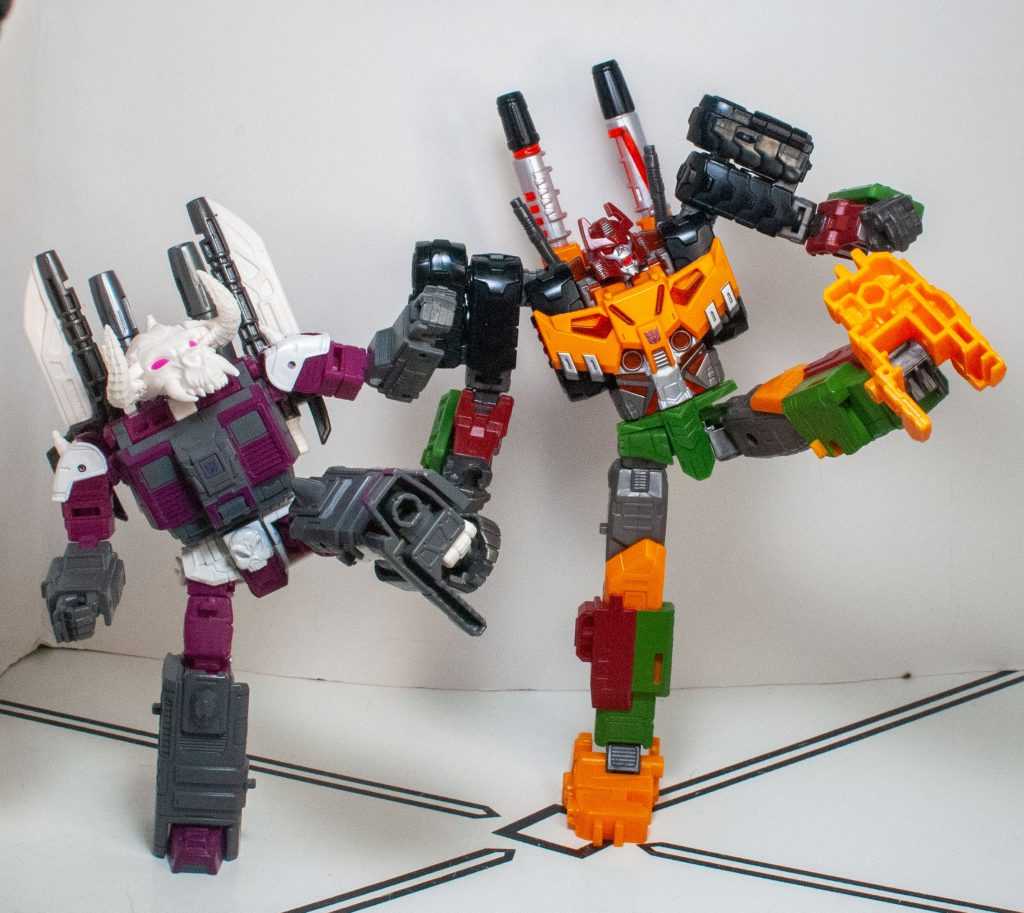 The only way this could be considered a downgrade is if you’ve got an issue with this tooling being really clearly designed as someone else, and given a new head and extra sword to turn him into Bludgeon. But that’s a really dour, unfun way to look at the hobby, and it’s still a very fun figure that works as the character it now represents. And as a fellow skeleton person, he makes a good companion piece for Legacy Skullgrin, a similarly fun, flexible surprise of a toy.